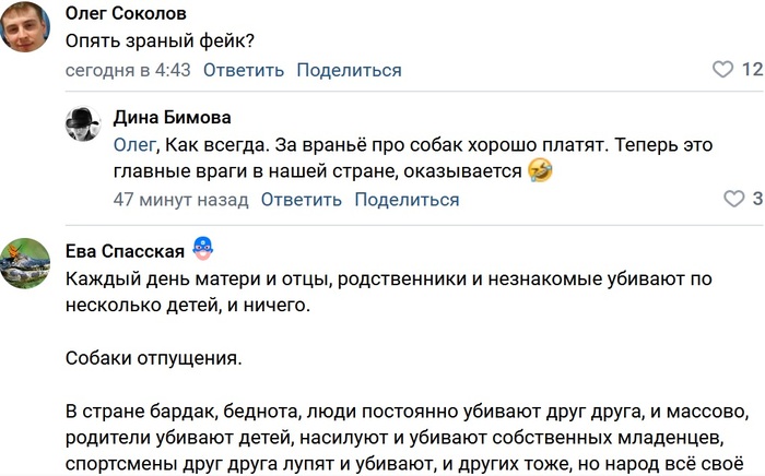 775 Pandorr Против бродячих собак Очередное нападение бродячих собак1 1 год назад И очередная атака зоошистов в комментах.https://vk.com/wall-29725717_768817 Комменты там же: Бродячие собаки Радикальная зоозащита Городские сумасшедшие Скриншот ВКонтакте (ссылка) Негатив Нападение собак Длиннопост 45 9 5 2 1 Ещё 0