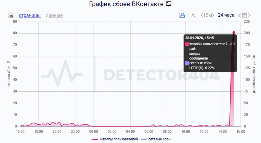 28.01.2026, 15:15 В работе «Вконтакте» произошел сбой 28 января