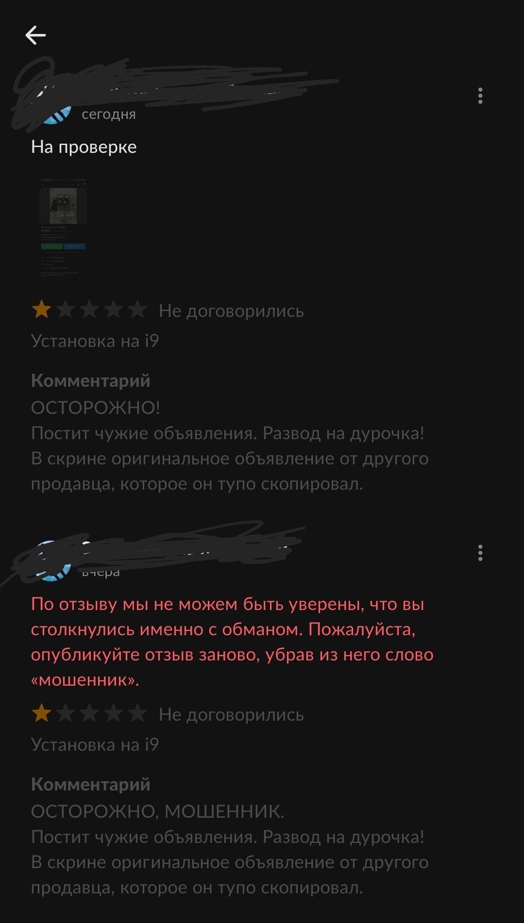 Я же отписался автору оригинального объявления, что его копируют, подал жалобу на аккаунт мошенника и оставил отзыв, дабы он не успел никого обмануть до блокировки. НО!..