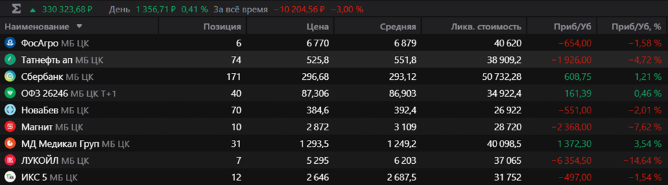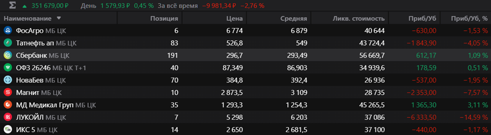 Возможно, обратили внимание, что куплены акции компаний, которые недавно отчитались за 9 месяцев (кроме Татки). Несмотря на тяжелый новостной фон – бумаги показали себя не плохо. Это говорит о том, что рынок доволен результатами и готов покупать по текущим ценам.