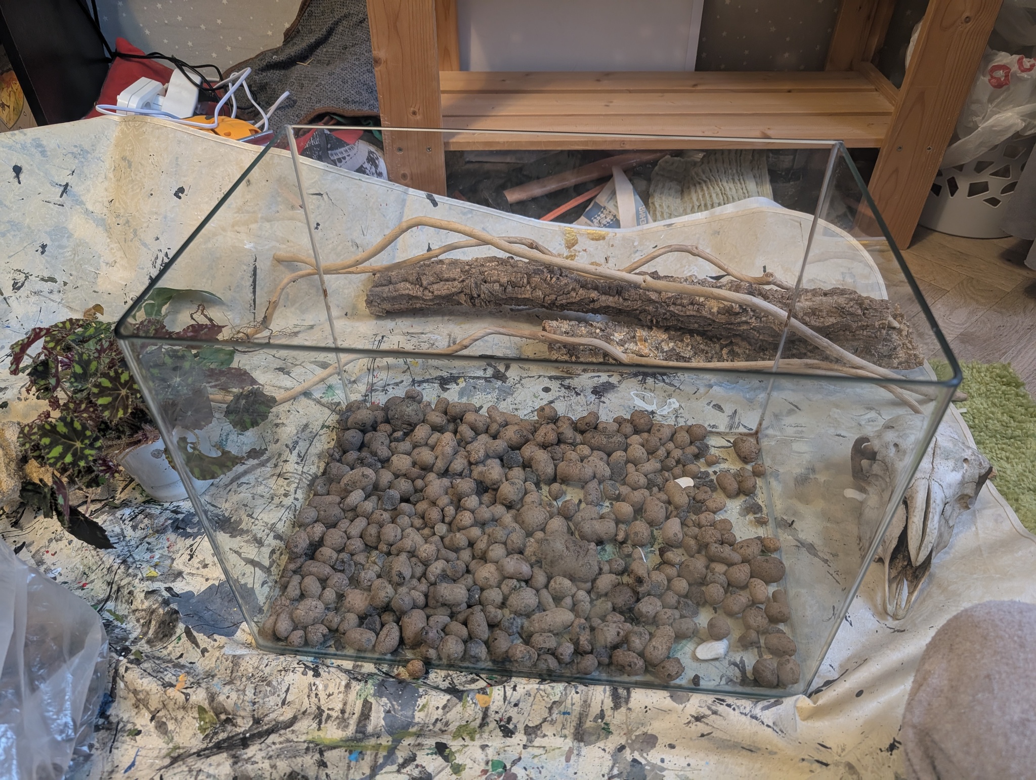 В онлайне были заказаны лампочки, в закромах найден аквариум без ближайшего будущего под рыбок. Так же в наличии были тараканчики Магнифика, проживающие в контейнере. Их не много, всего 7 штучек, но очень красивые моему глазу.