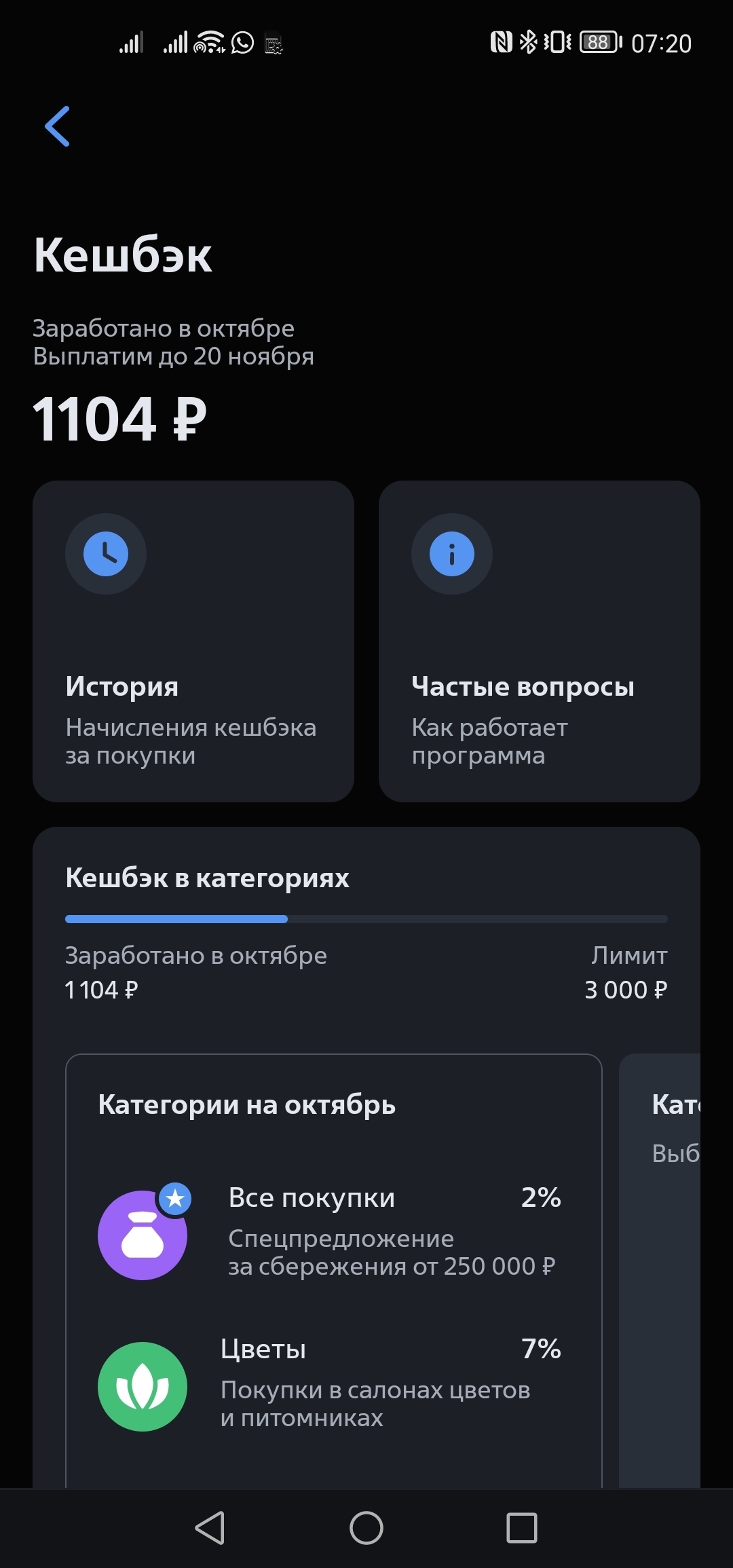 Мне кешбэк насчитали 66 руб за месяц.