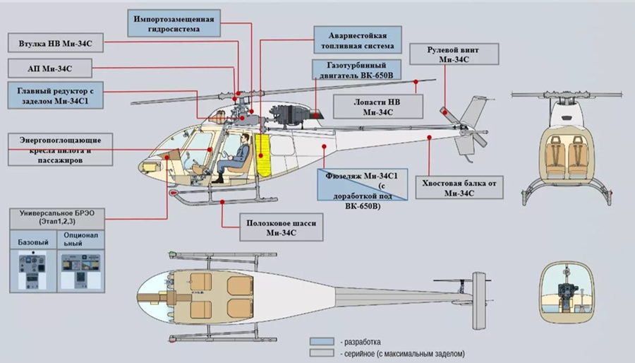По словам Чемезова, Ми-34, как и модернизированный «Ансат», будет оснащен отечественным двигателем ВК-650В. Новый мотор полностью заменит иностранные аналоги, поставки и обслуживание которых сегодня фактически прекращены.