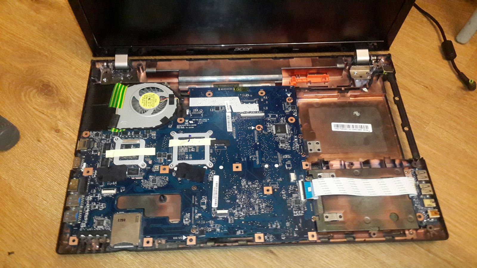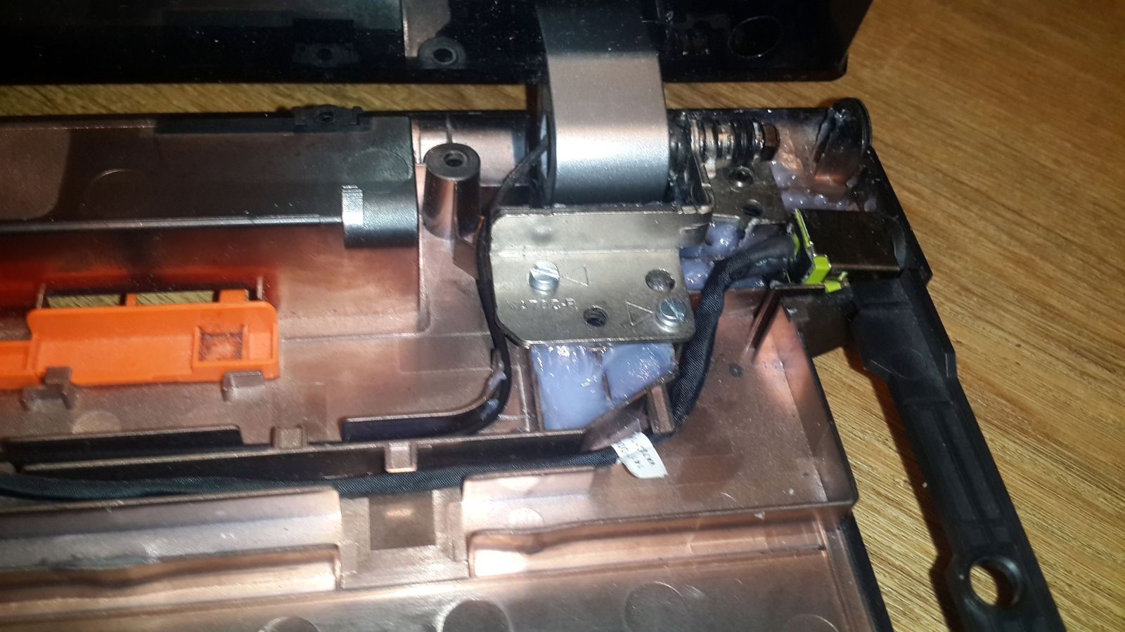 Доброго времени уток. Понимаю что писем много , но не могли бы помочь советом.Сразу к сути. У девушки acer aspire v3-771g , с недавнего времен стал похрустывать при открытии\закрытии (мой косяк ,сразу не глянул) . В итоге перестал включаться совсем. Только горит светодиод индикатора питания\зарядки. При разборке обнаружил что шарнир экрана отошел от корпуса. Все пластиковые крепления в крошку и болты ,которые по идее должны держать пластину с поворотным механизмом, выпали сразу при осмотре, так как не в чем не держались. Кабеля уходящие к экрану как раз с той стороны, но вроде они целы. Так как повреждение чисто механическое , то непонятно почему ноут не работает. Так же не понятен характер возникновения данного повреждения, ноутбук не роняли и в целом относились бережно. В чем может может быть причина ? Заранее Спасибо."