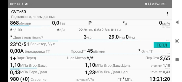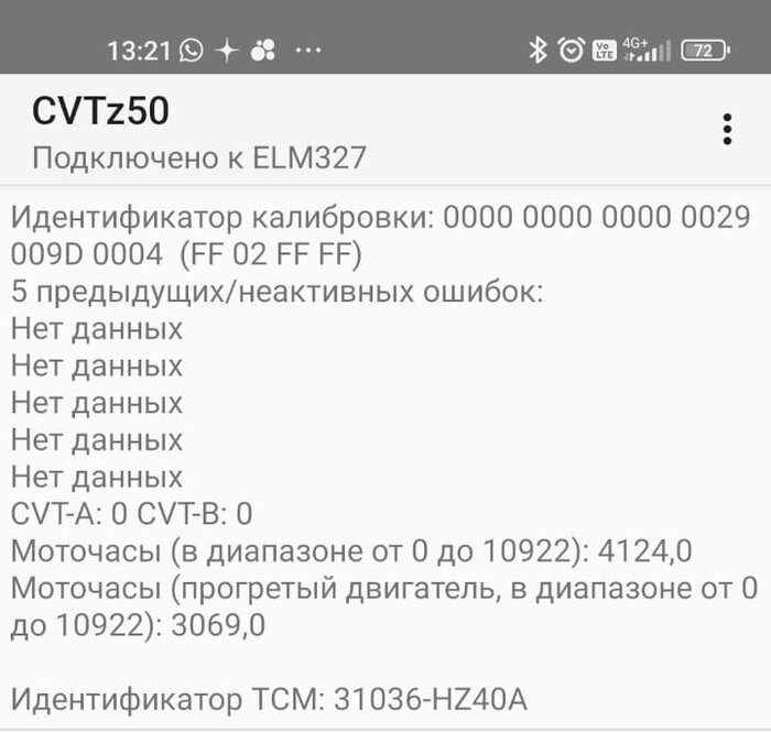 Вариатор работает исправно. Ошибок по нему нет. Моточасы в вариаторе соответствуют пробегу.