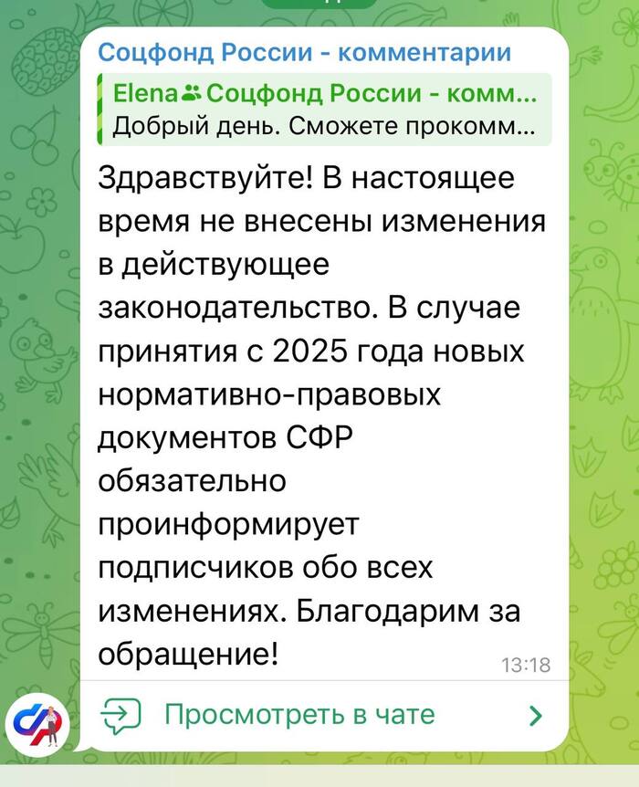 При этом сейчас в отделении СФР вам никто не скажет, что с 1 января планируют отменить компенсации. Закон же ещё не принят.