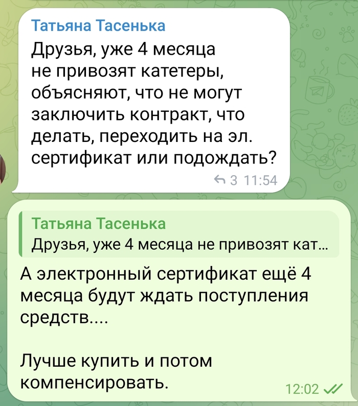 И те же электронные сертификаты в этом году задерживали до 5 месяцев. Но пока действует закон о компенсации за самостоятельно приобретенные ТСР, хоть и с опозданием, компенсации выплачивают, а если президент подпишет этот закон, то никто ничего не будет компенсировать инвалидам за вынужденные покупки жизненно важных ТСР, которые нельзя отложить на потом (покупки подгузников, катетеров, противопролежневых матрасов и подушек и много чего ещё).