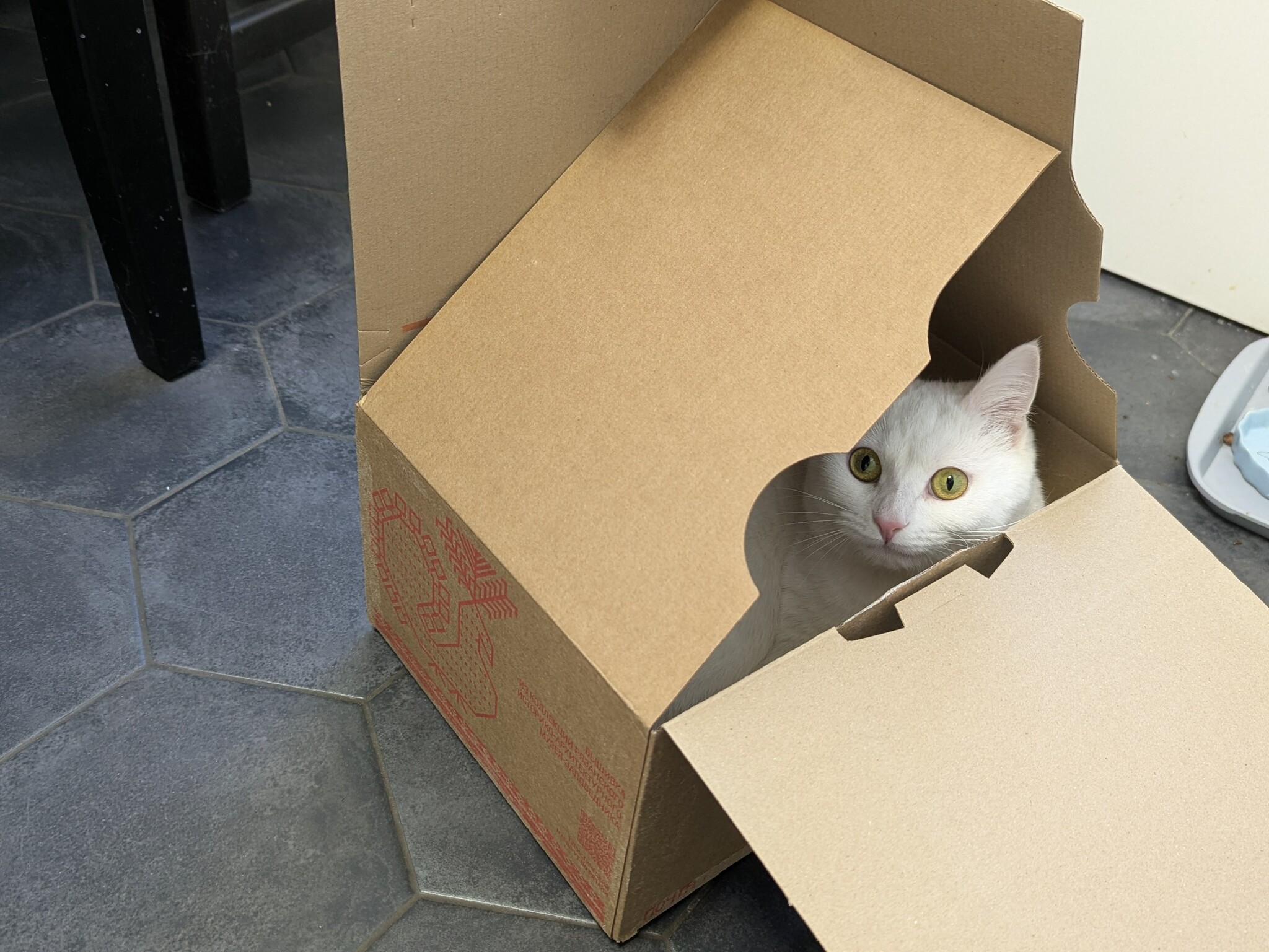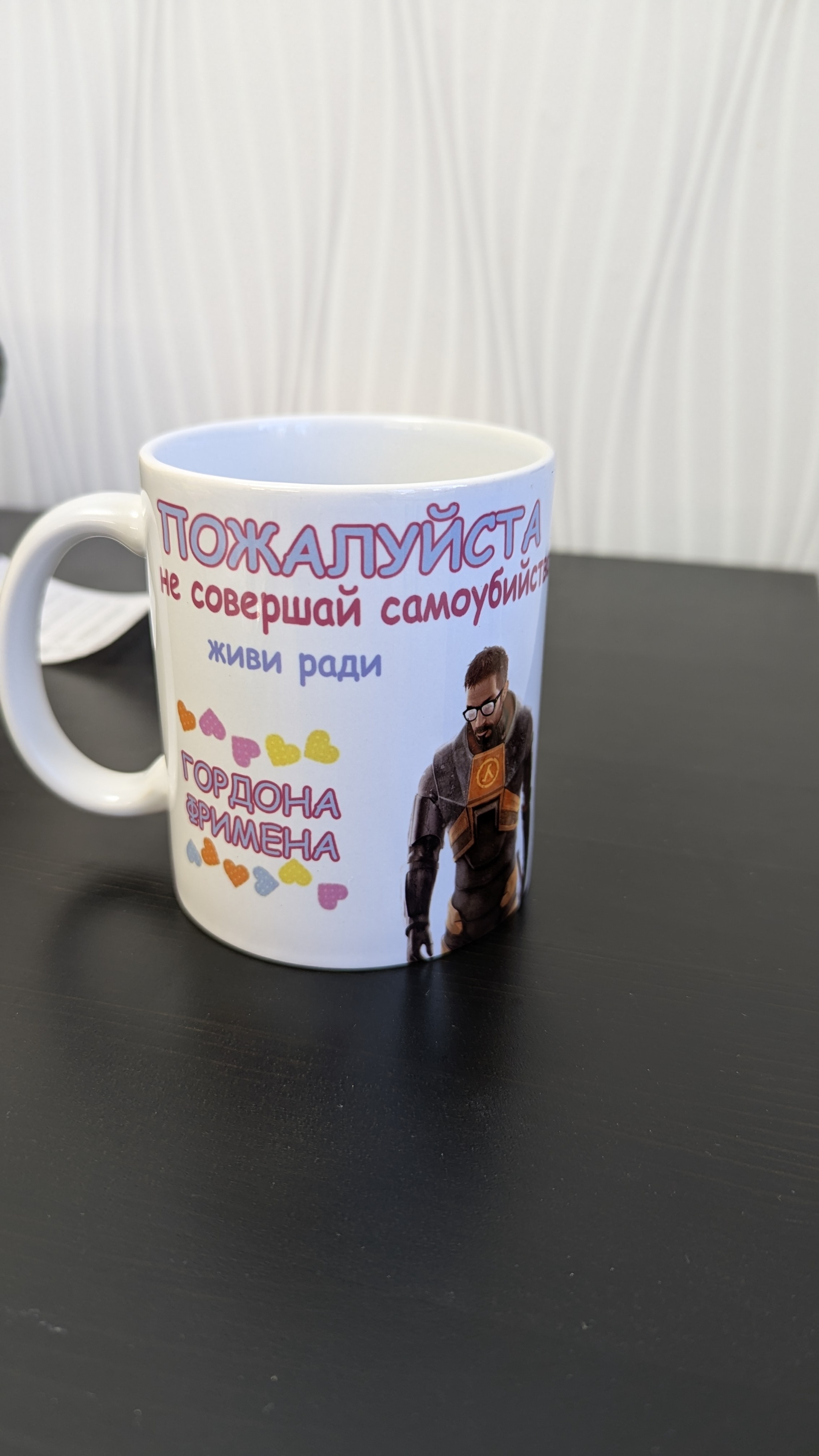 Далее коробка с надпись "Хрупкое". В ней кружка с дико угарной надписью: