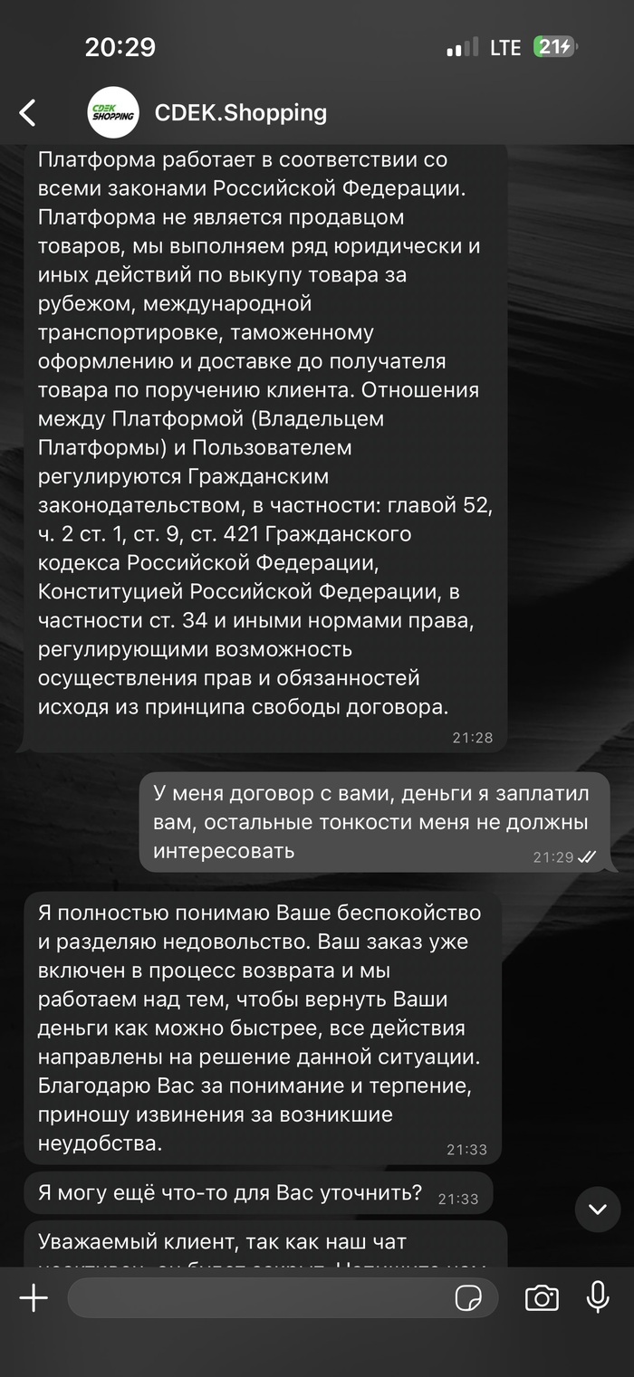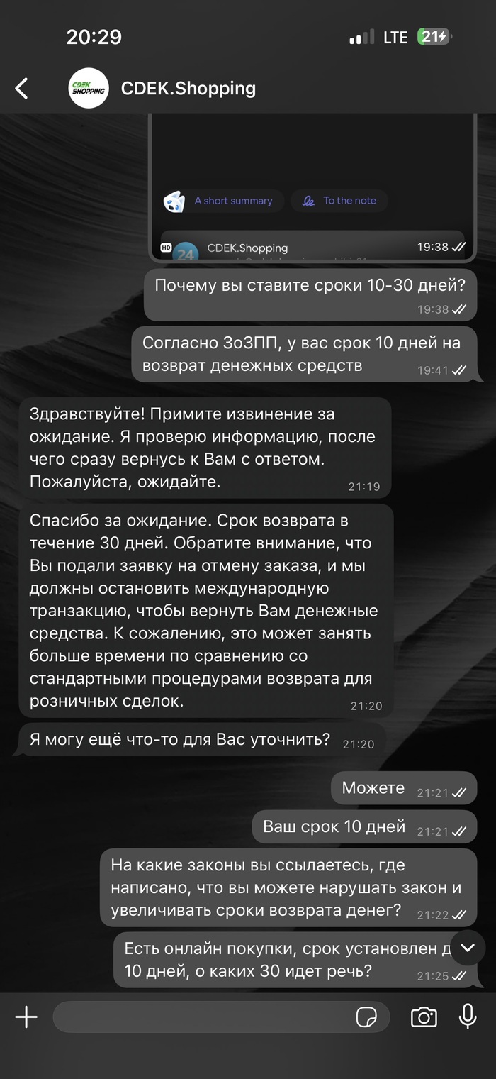 Очередной «положительный» отзыв работы СДЭК.Шоппинг