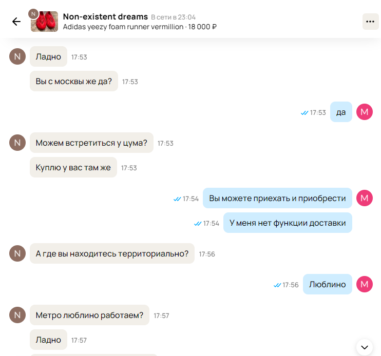 Сам я на Авито продаю-покупаю года с 2011, кучу всего купил и кучу всего продал и всегда все было без проблем. И вот, в один субботний день 30 марта 2024 года, мне пишет человек с вопросами по поводу кроссовок, которые я продаю. На часть из них я ответил, после чего пошел собираться и уехал в гости, решив оставить продолжение диалога, так как уже опаздывал, на более удобный для меня момент. Сразу оговорюсь, оповещения по телефону у меня выключены, так как от авито приходит очень много спамных пуш-уведомлений.