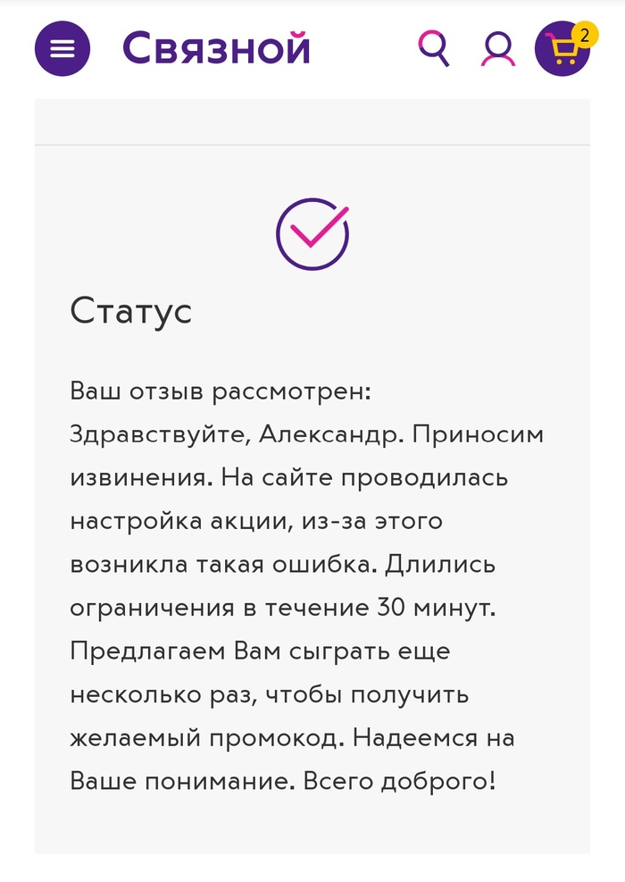 Как ни странно, после меня промо-код на скидку 70% вообще никому не выпадал - видимо настройка акции прошла успешно.