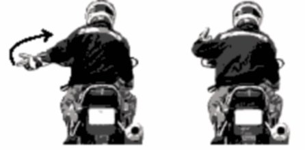 Жест « Обгоняй». Вытянутая левая вперед рука под углом 45 градусов. Направление движения руки — вперед.