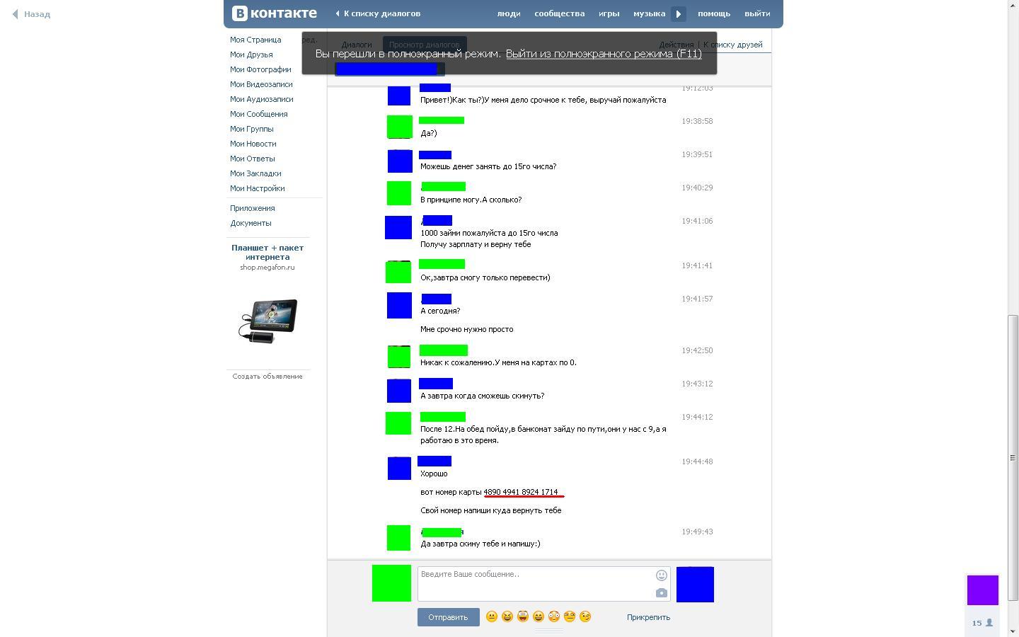 Уже куча постов была про всякий люд воровской вконтактике,и пришло мое время добавить свои 5 копеек.Вот такой диалог сегодня состоялся с моей подругой.