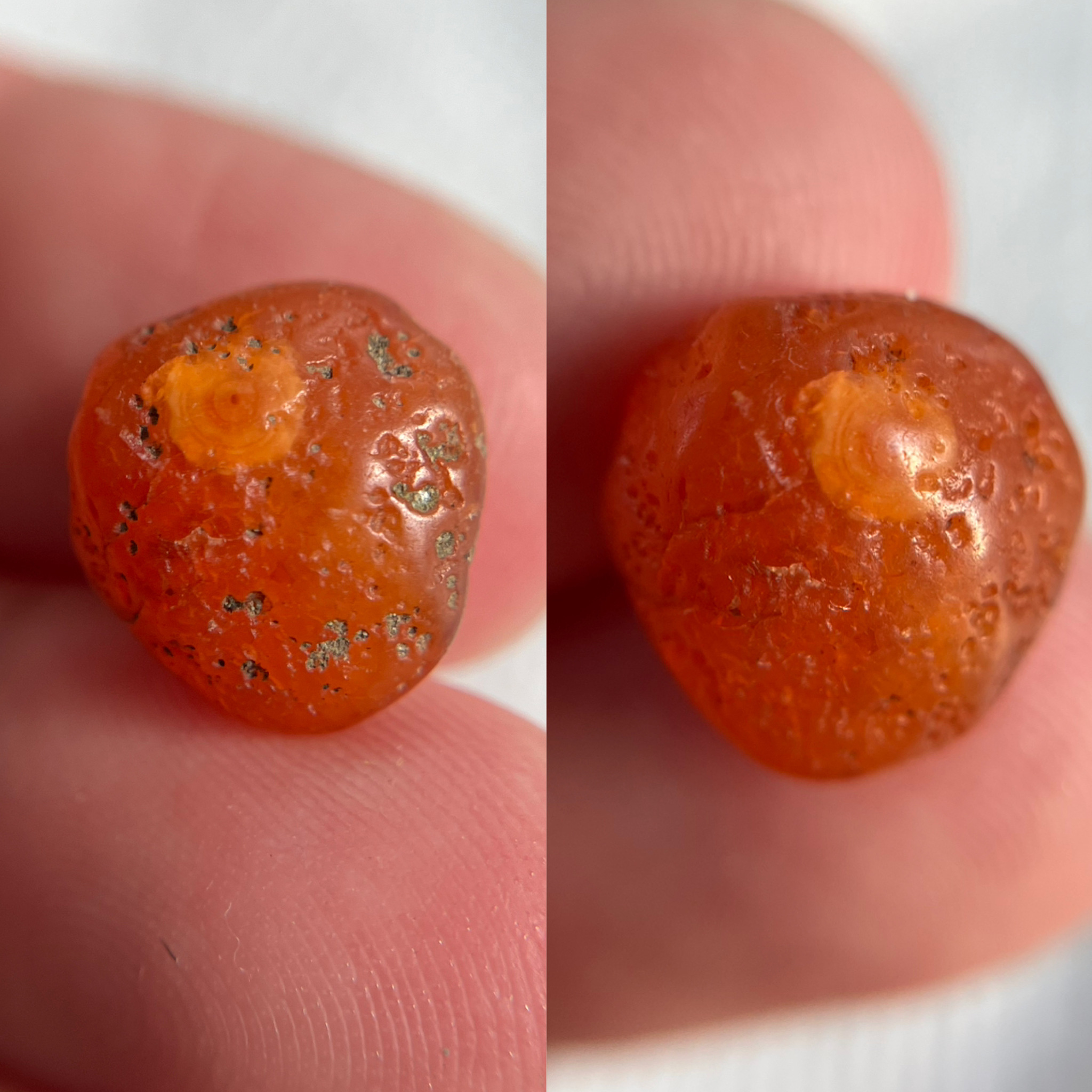 Первоначально я допустила ошибку с сердоликами. Дело в том, что на них трудно понять, где грязь, а где остатки заветренной или окрашенной корочки (рубашки). Такую корочку, конечно, ничего не смоет. Вот один из таких примеров.