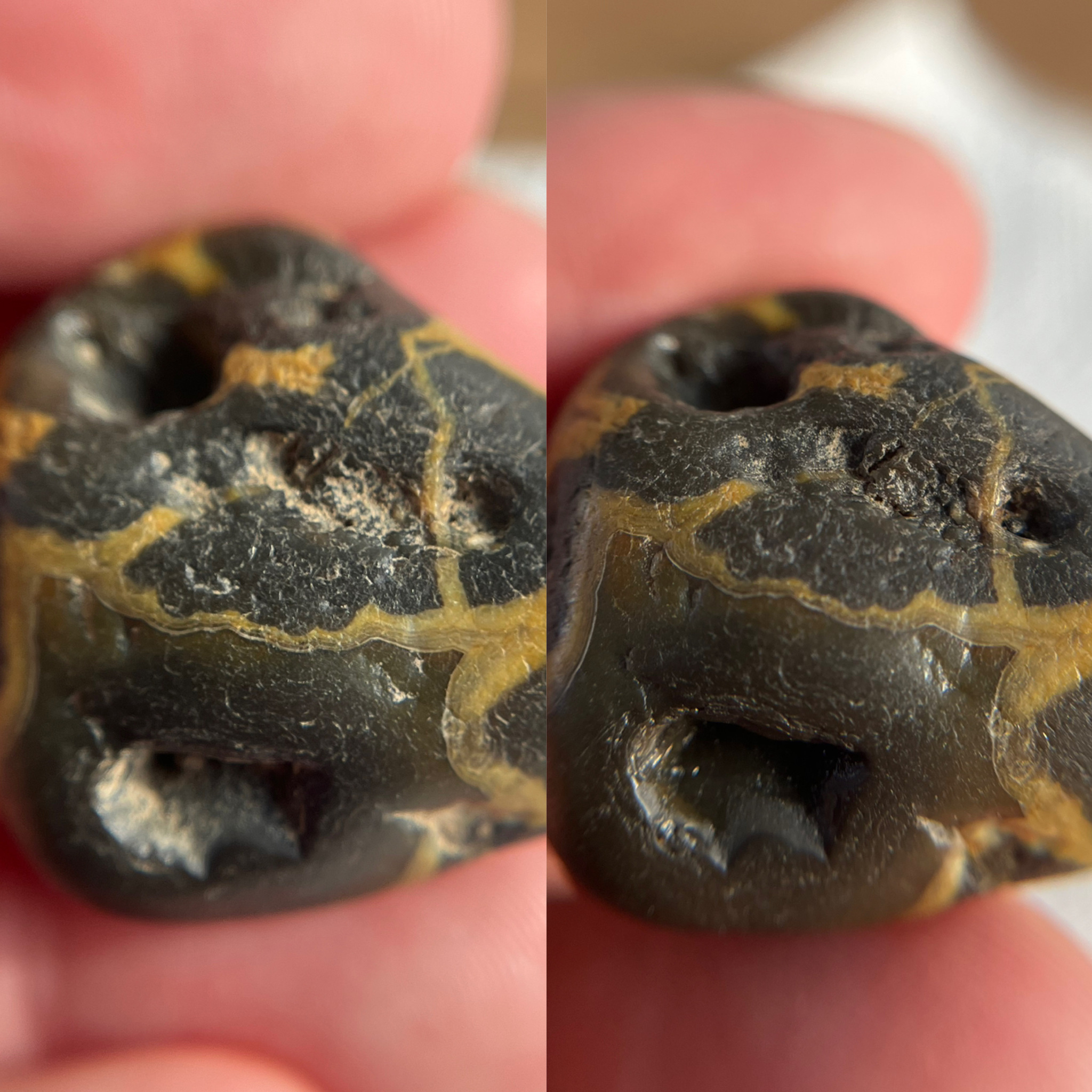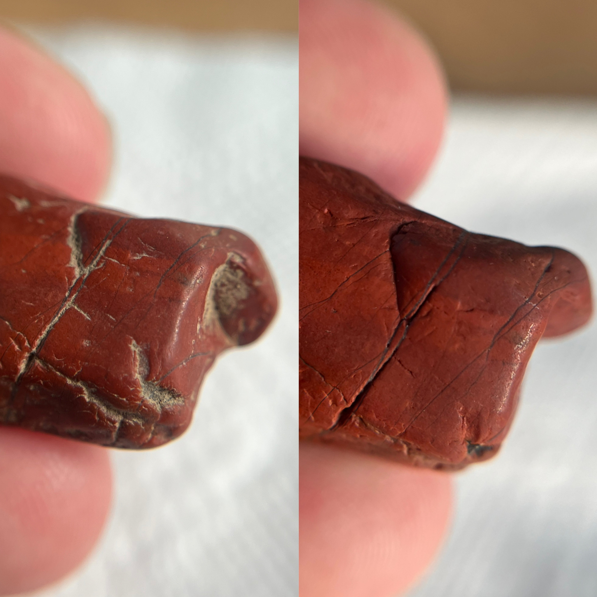 Как вы, возможно, помните, агаты и сердолики в моем регионе имеют очень много трещин. Кроме того, у них присутствуют питательные канальцы, которые на поверхности выглядят как маленькие ямки. Вот как раз в них и в трещинах часто скапливается речной ил, который вымыть не так-то просто даже при помощи зубной щетки.