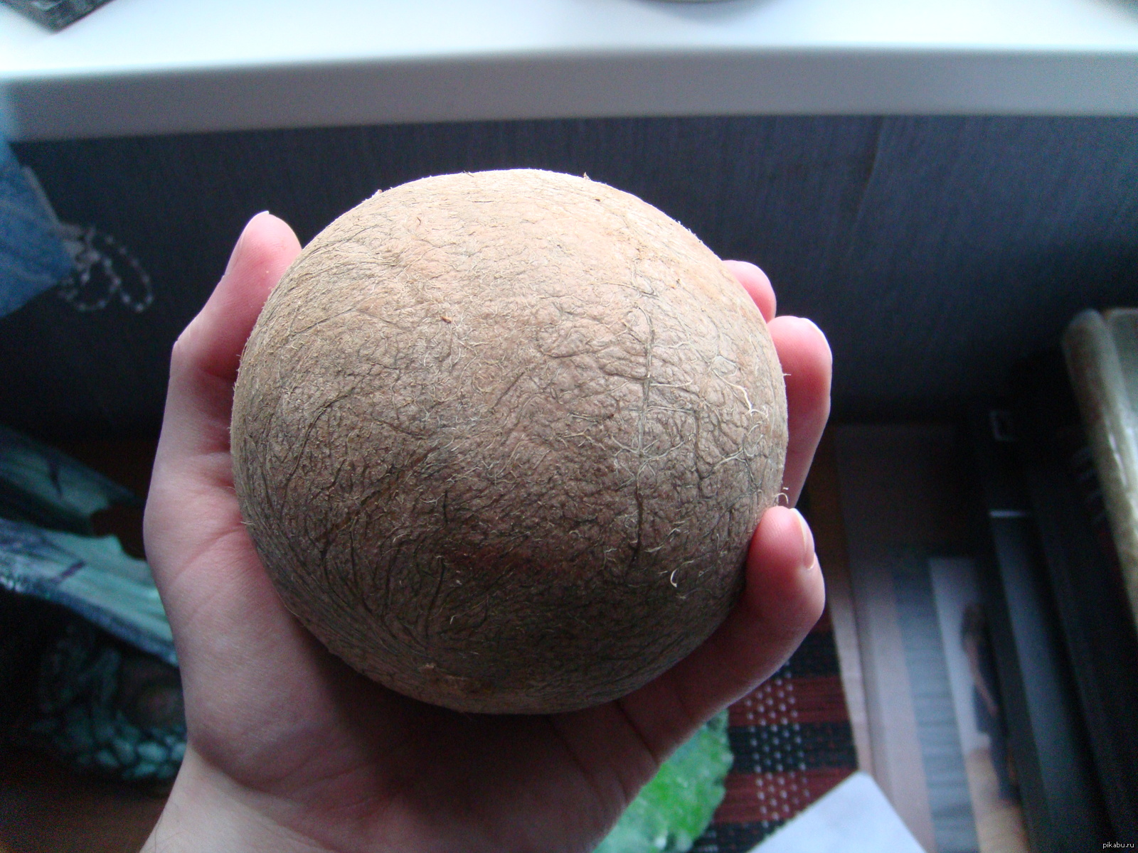 Нужно купить спелый кокос с зелёным так не получится. Затем со всех сторон обстучать молотком что бы мякоть отстала от скорлупы. И аккуратно разламывать/откусывать скорлупу. Хорошо получается с помощью плоскогубцев.