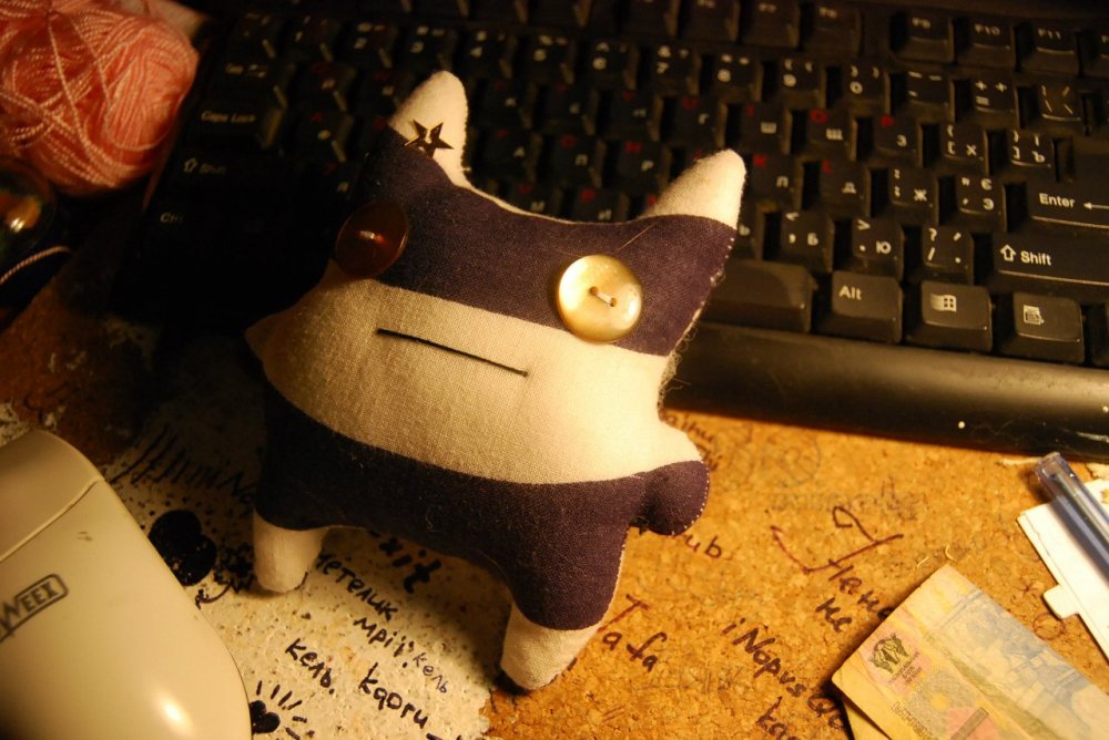 Блин, а я котенка в пионерлагере сшила (лет 100 назад), так племянникам, наверное, в страшных снах снится, имела дурость показать :)