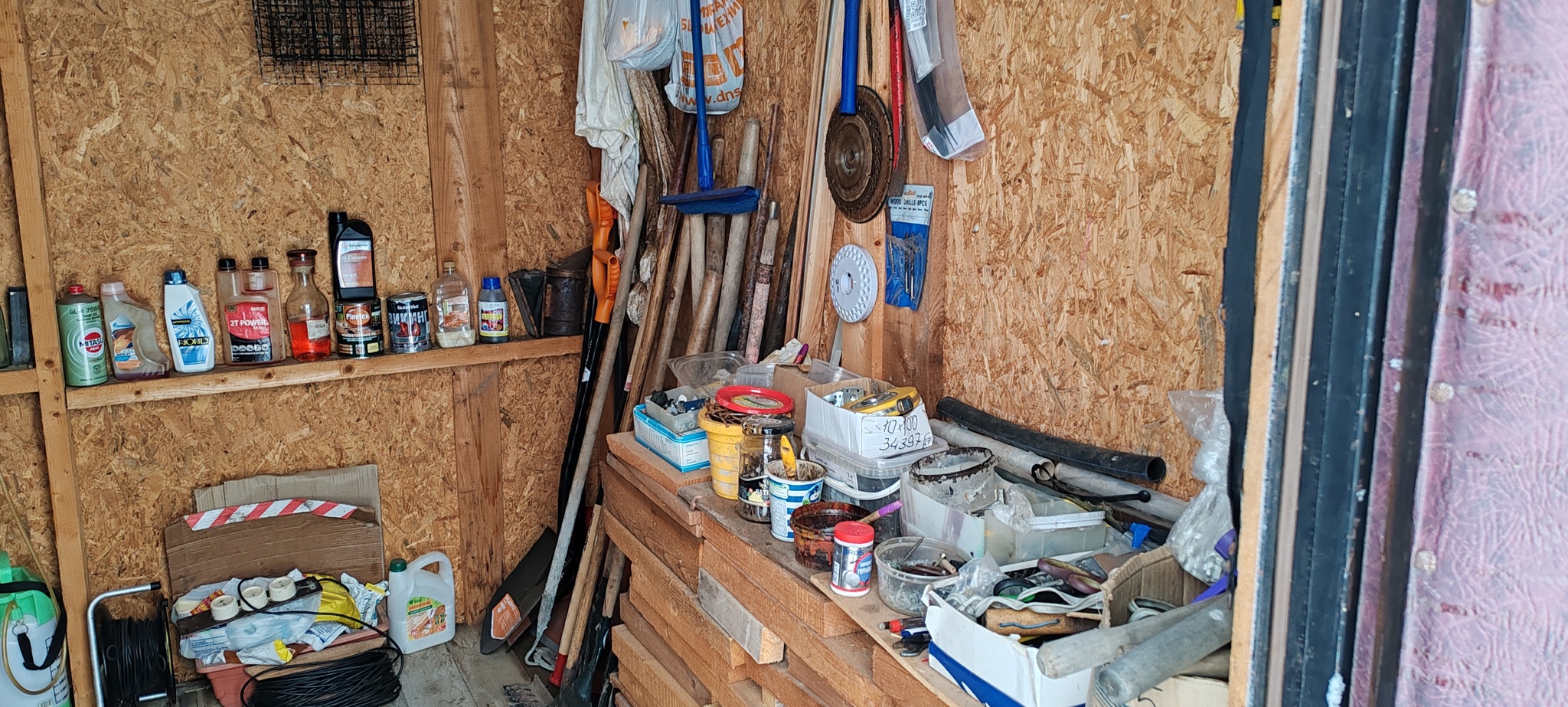Сарай был первым строением на нашем участке, и его актуальность была обоснована на 200%. Стройка и огород требовали место закрытого хранения всякой нужной всячины, поэтому в начале сезона было необходимо оперативно построить его- сарай. От готовых вариантов я отказался сразу- дорого и беспонтово, решил сделать такого размера, которого сам захотел, используя часть бу пиломатериалов, но пришлось докупить ОСП для обшивки каркаса, кровельный проф. лист и фасадую краску для внешних работ. Фундамент столбчатый лил сам в ноль, потом поднимал в уровень столбики бу рабочим кирпичом. Да , еще одина важный момент, у меня был старый кессон, котрые мне за один день перенесли и закопали на месте под будущим сарем чемпионы мира по копке узбеки-мана., так что по задуманному в голове проекту должно было получится стратегическое многофункциональное строение, которое в результате вышло очень удобным , практичным и надёжным, потому что на входе я поставил старую металлическую дверь, подаренную мне с барского плеча любимой тёщей. Что не говори, но ногой ее ( дверь, не тещу)не выбьешь, проще стену раздербанить, но не будем впадать в крайности, никто этого делать не собирался. А далее, как после любого проекта, началась эксплуатация.