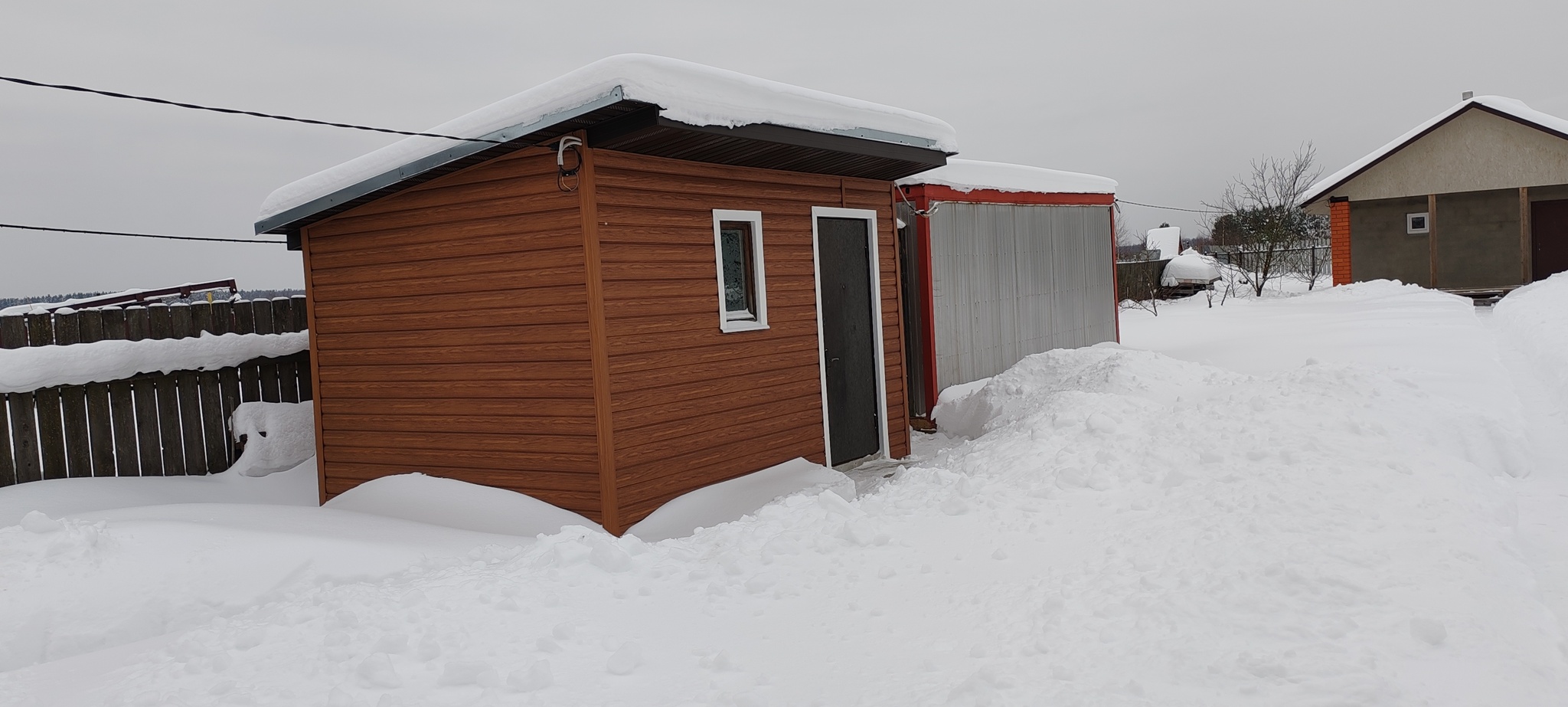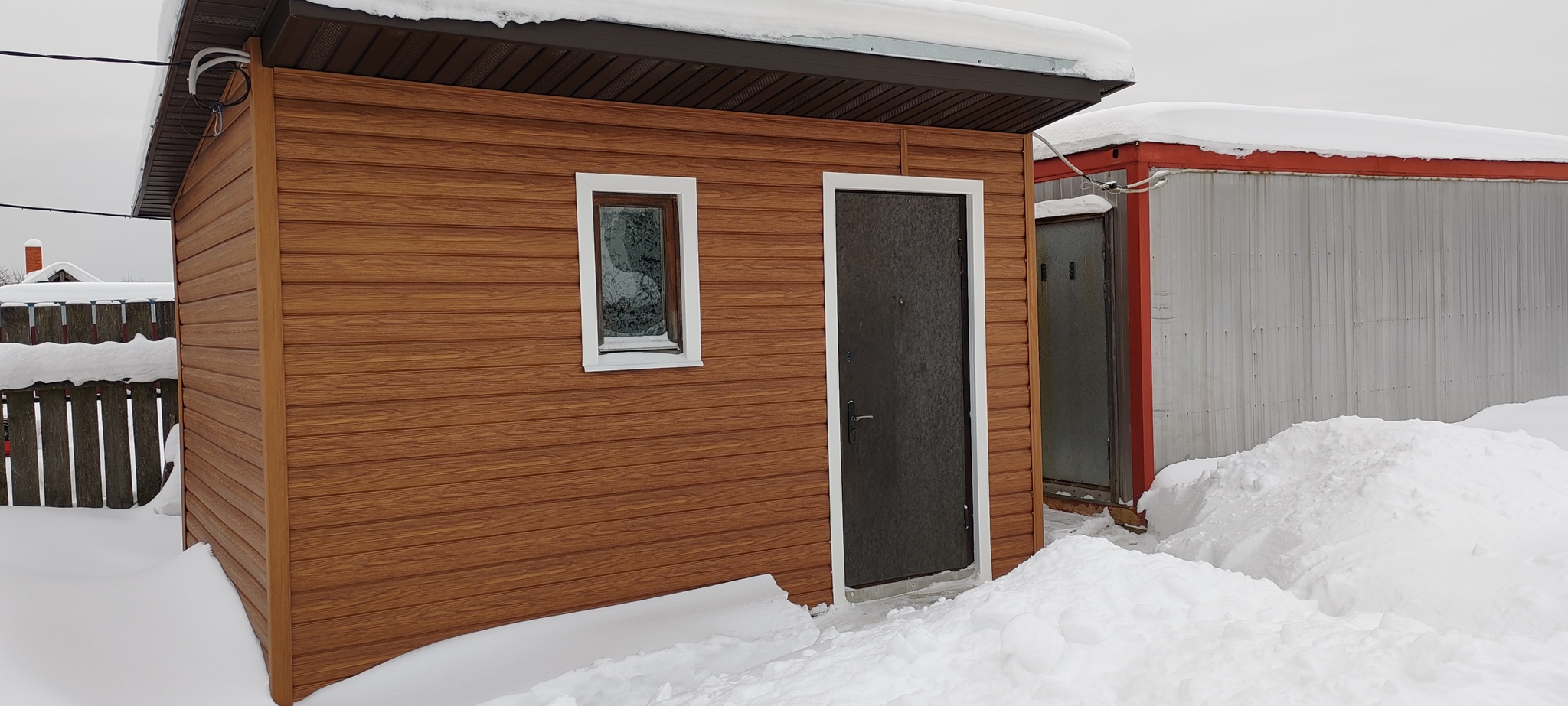 Опять , послушав супругу, будучи в командировке, наняли работника , который обшил сарай дорогим сайдингом под блокхаус. Наверное, теперь у нас не просто сарай, а принц среди всех подобных строений нашей деревни. С одной стороны- глупость, а с другой- этот каркасный сарайчик, построенный мной на скорую руку, сослужил нам верную службу, поэтому мы решили защитить его от жестких атмосферных воздействий, так что послужит ещё и не один год, главное, не вестись на «пригодится» и своевременно проводить инвентаризацию.