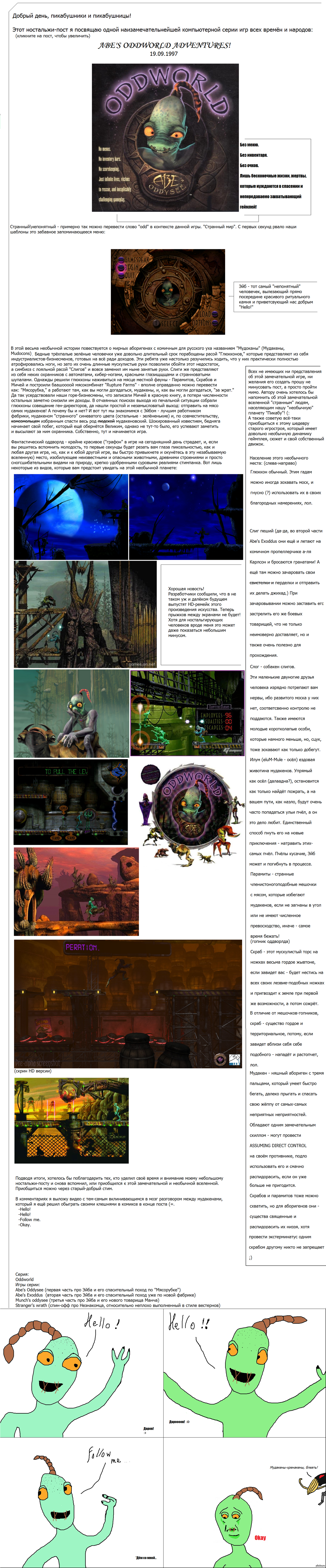 9 Hadzabadza 11 лет назад Oddworld Inhabitants Жители неизведанного мира Длиннопост, призванный напомнить об этой замечательной серии игр тем, кто в неё играл, и, возможно разжечь интерес у тех, кто этого не сделал раньше. [моё] Oddworld Abe Длиннопост Ностальгия Компьютерные игры