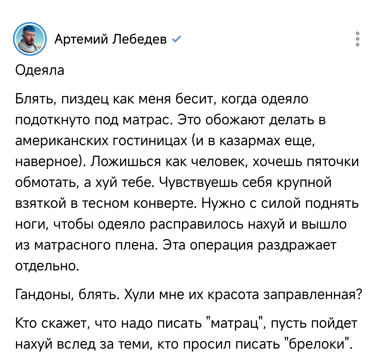 988 Dememtor Уголок Копипастера Одеяла 11 месяцев назад Скриншот Артемий Лебедев Одеяло Мат 76 20 13 3 Ещё 0