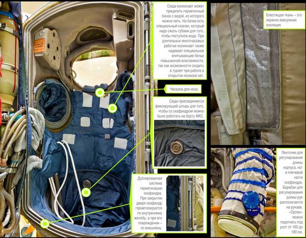 Но сказать, какие скафандры лучше – российские или американские – специалисты не могут. У тех и у других есть свои плюсы и минусы, так как они разрабатывались под разные цели. Одно из преимуществ наших «Орланов» – возможность «подгонки» скафандра под конкретного космонавта. Американские скафандры собираются как конструкторы. Для выхода в космос американский астронавт подбирает для себя по размеру все части скафандра, которые хранятся на складе МКС. А еще американский скафандр – в отличие от нашего – невозможно надеть без посторонней помощи.