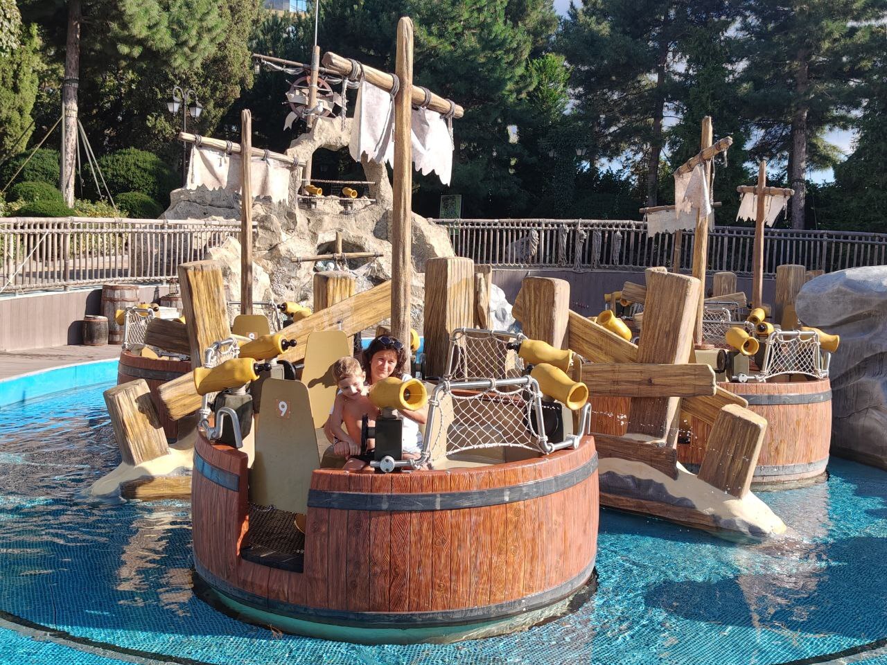 А еще мы катаемся на гондолах с водными пушками. Тут все друг в друга стреляют водой. Это очень мокро, но весело.