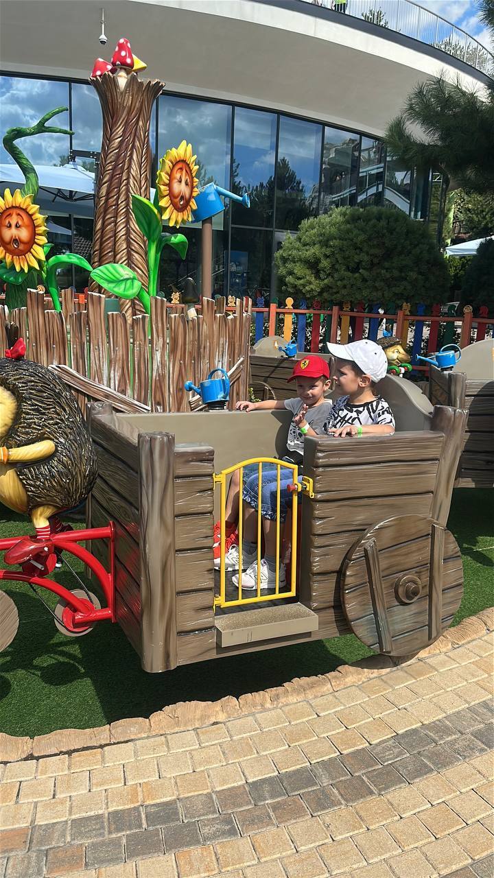 Усталые, но довольные ползем в семейный парк Дримвуд. Тут много всего – и американские горки, и аттракцион свободного падения, и прогулка на джипах. Но почему-то детям больше всего нравится маленькая карусель с музыкой и ежиками-садоводами.