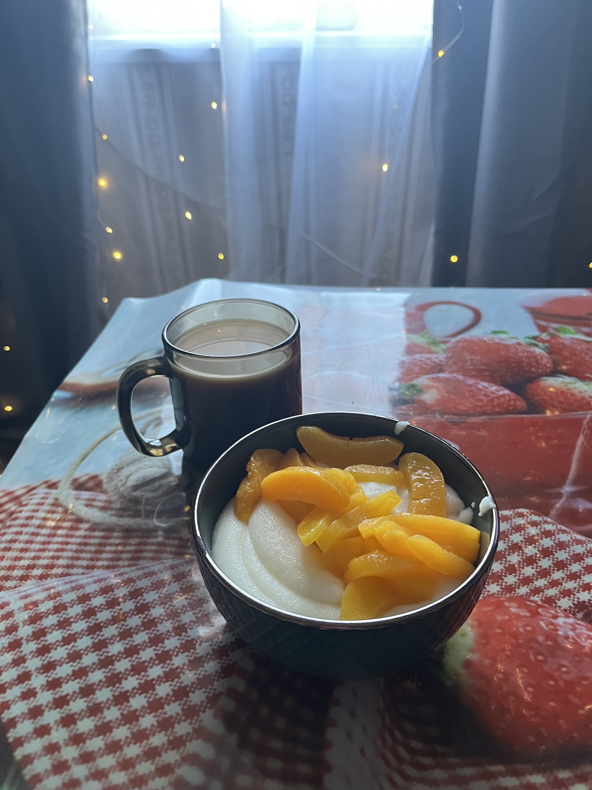Утром я растапливаю печь. Не хочется будить Андрея, да и самой мёрзнуть некомфортно. Затем готовлю завтрак. Чаще всего это молочная каша. Иногда заранее пеку кекс или шарлотку с фруктами. Тогда утром можно обойтись без готовки. Впрочем, последняя шарлотка с абрикосами не дожила даже до фото, не говоря уже о завтраке😅