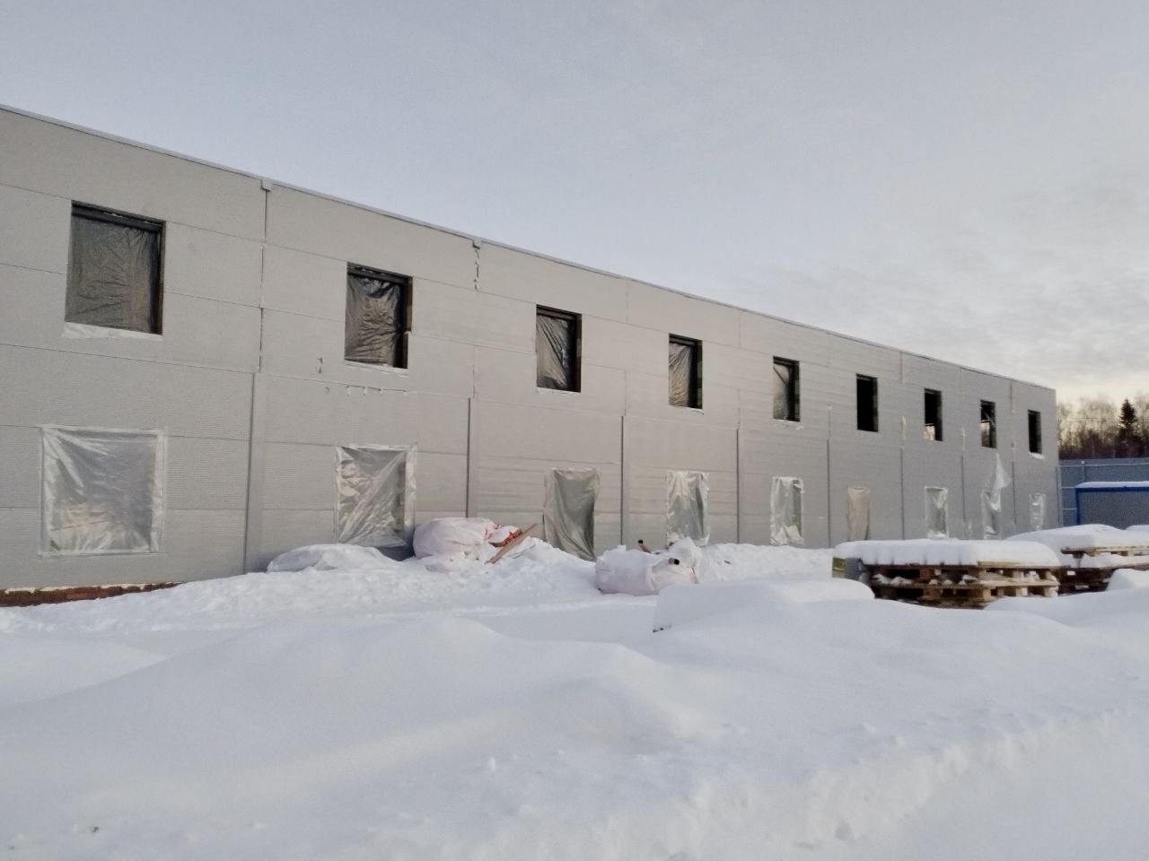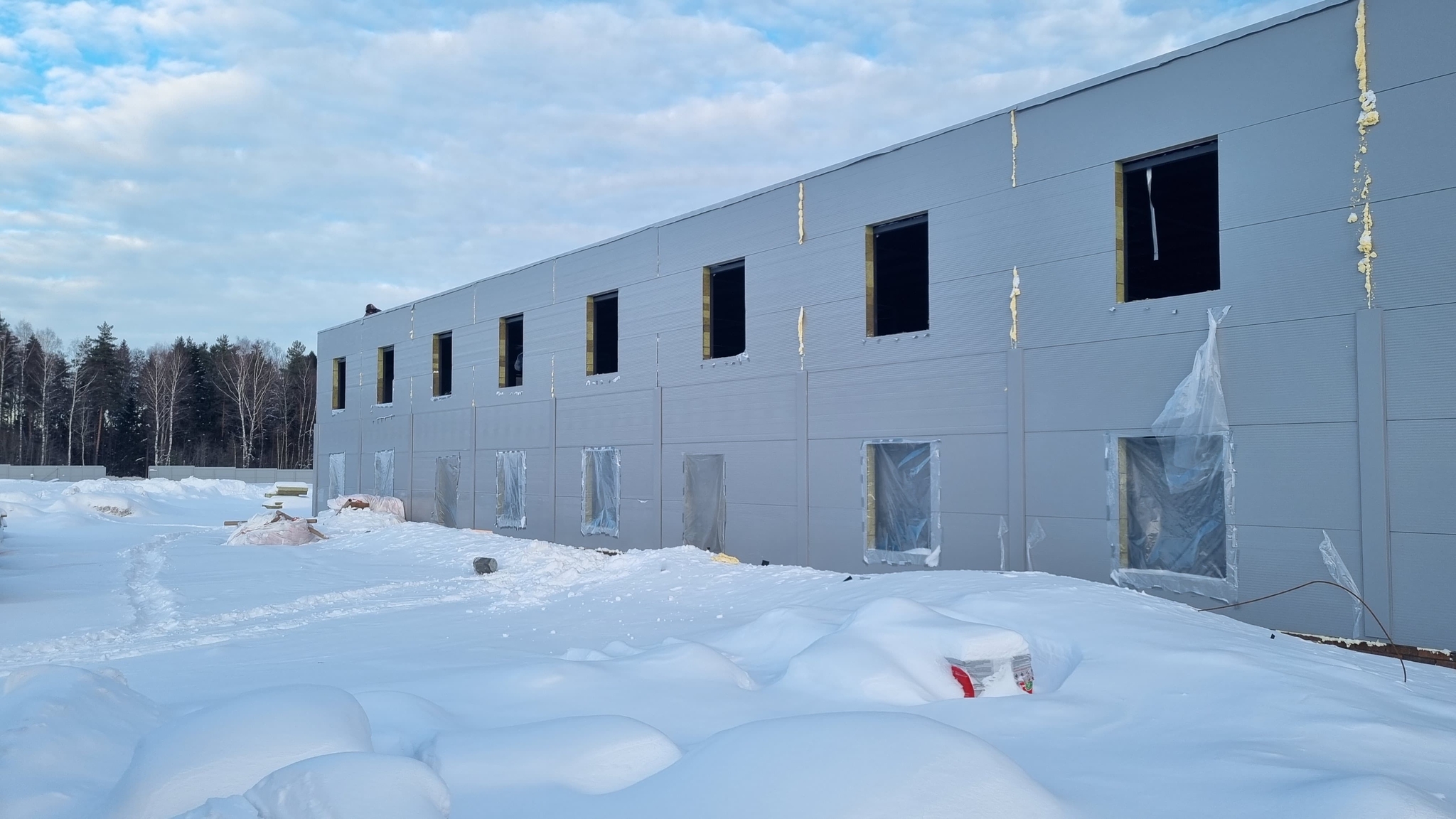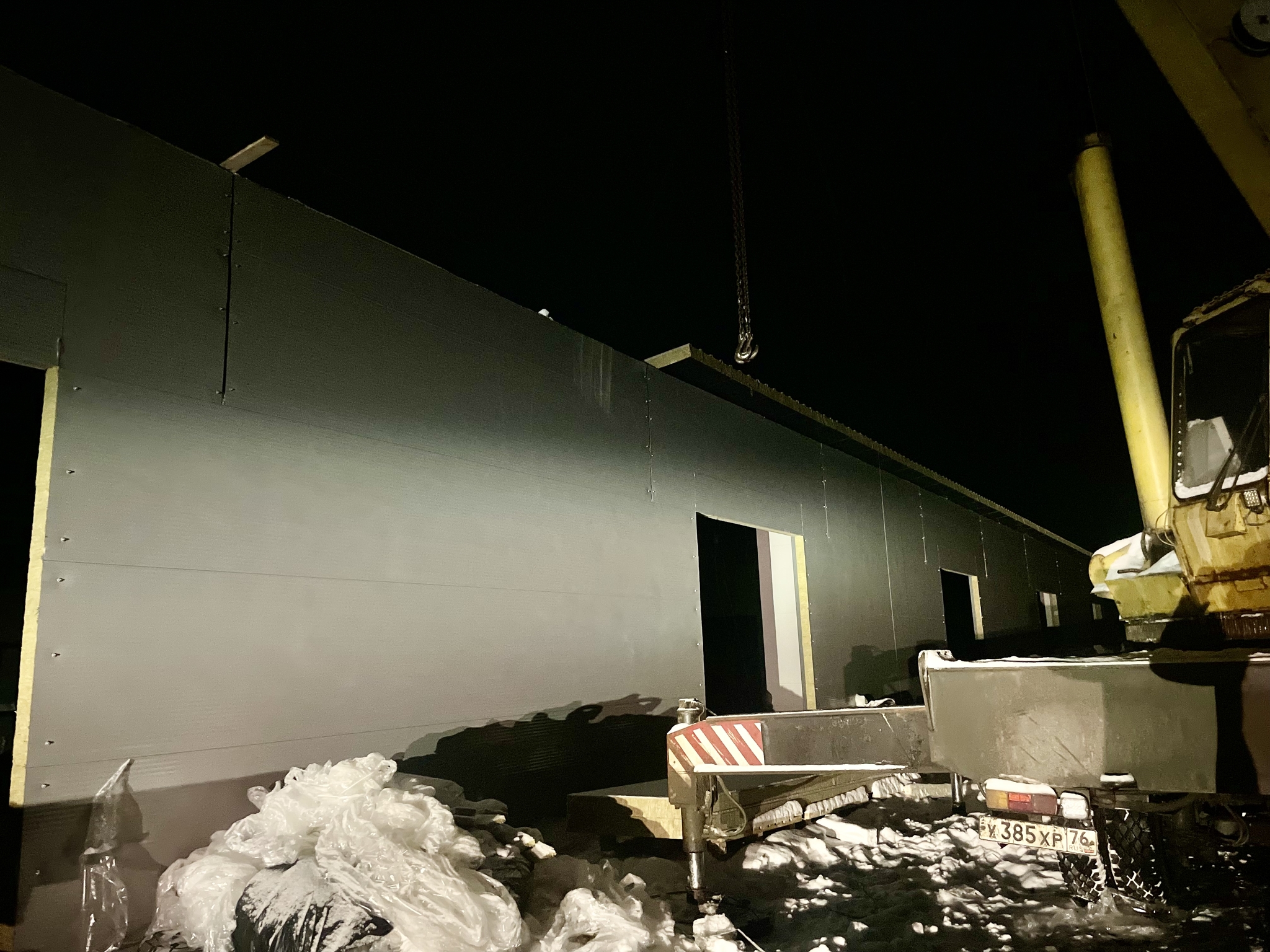 Монтаж сэндвич панелей на гараже 12х60х4м