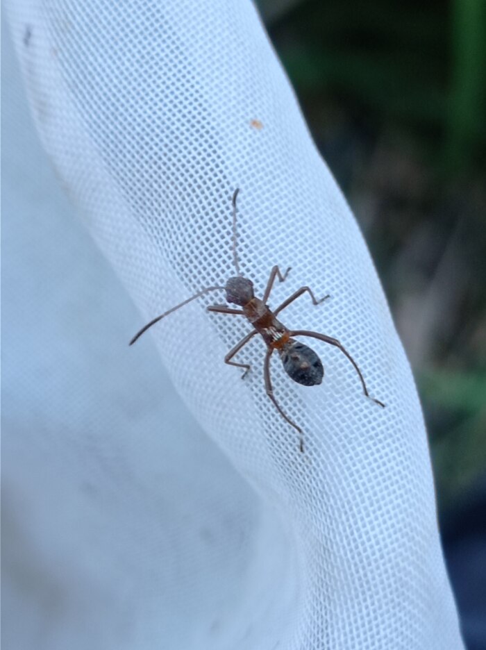Рис. 6. Иностранный агент среди муравьёв - клоп-хищнец. Он говорит вам "Здравствуйте! Я тоже муравей", а через секунду вонзает свой хоботок в грудь и сосет гемолимфу. Вкусно.