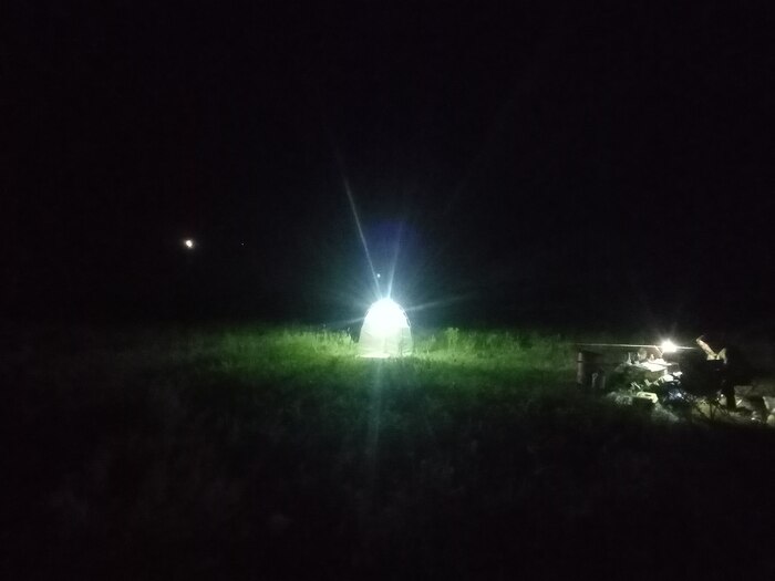 Наконец-то наступает ночь и мы можем применить ещё один супер эффективный метод изучения разнообразия насекомых - световую аттрактацию с использованием лампы ДРВ 160 В и белой лепестковой палатки.