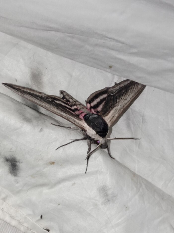 Рис. 15. Сиреневый бражник, наивно перепутав луну и лампу ДРВ, прилетел в объятия учёного.