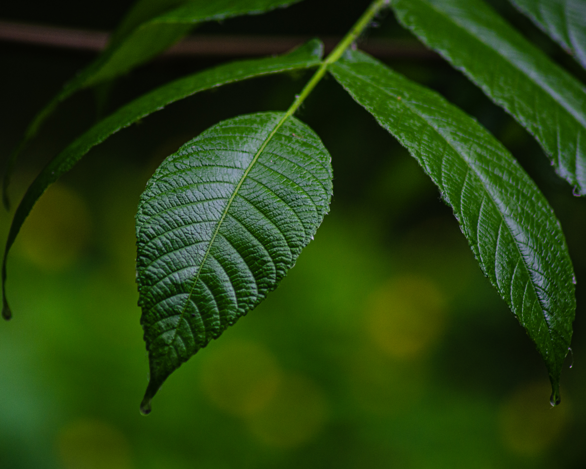 Листья монгольского дуба в период дождя шикарны, они с каплями дождя выглядят эффектно.