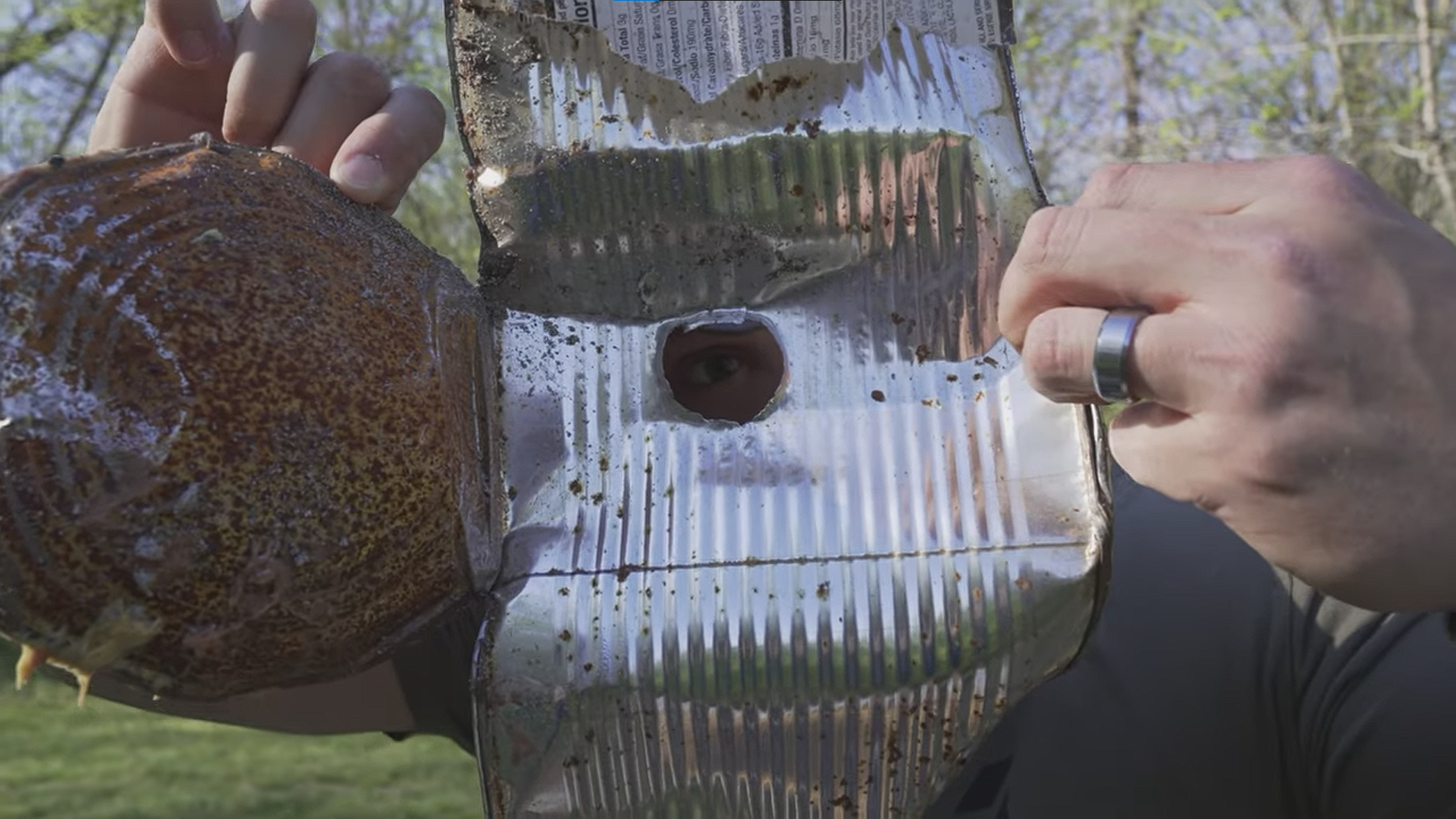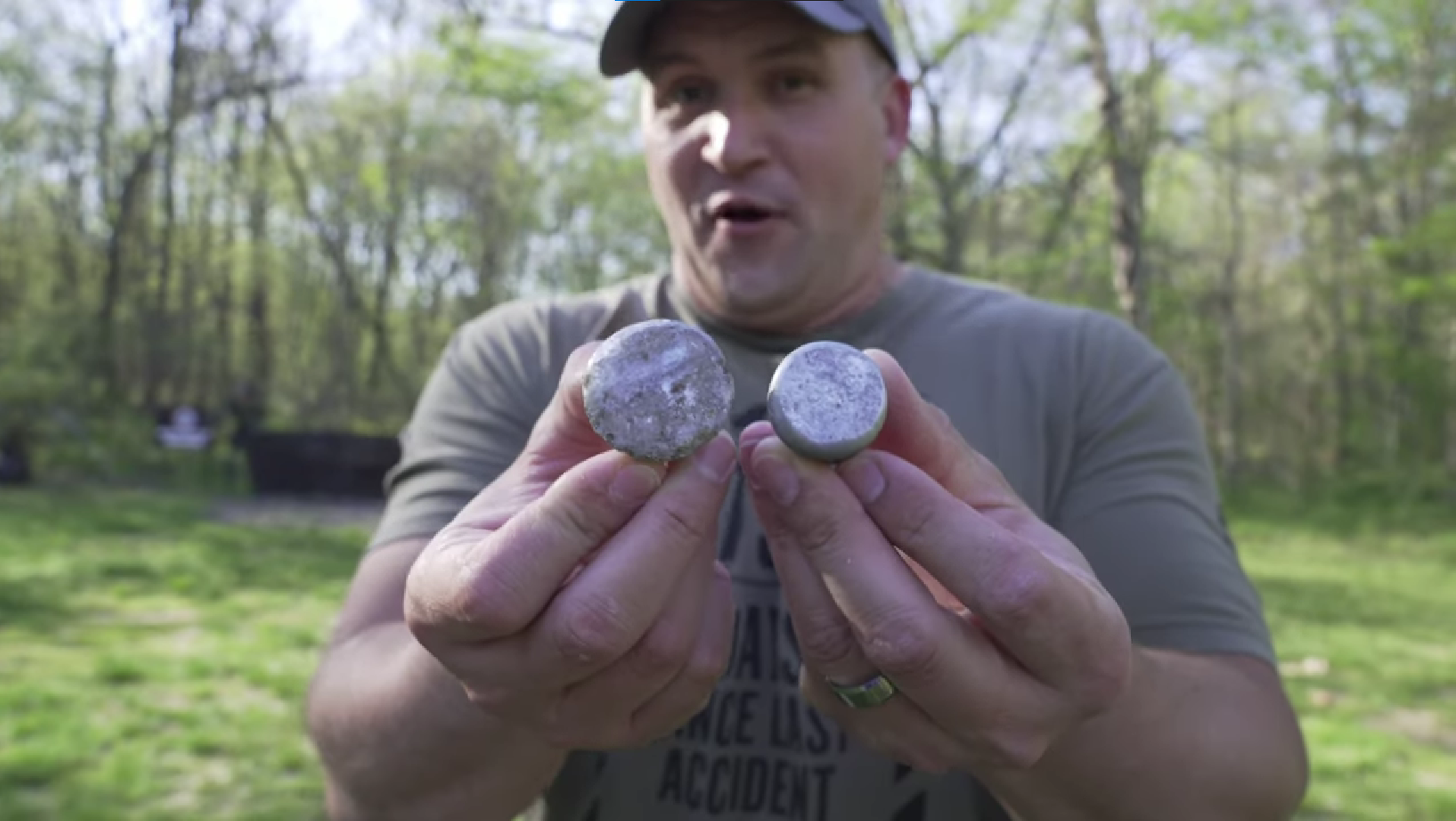 Никогда на канале Скотта не было такого, чтобы брусок 2х4 (примерно 3,8 на 8,9 см с поправкой на фактический размер) лопался с такой легкостью. Мишень сдуло на пару метров. Свинец оставил вмятину на стали AR500.