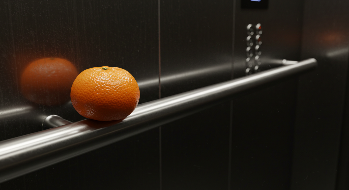 Сегодня утром кто-то оставил мандарин на перилах в лифте.