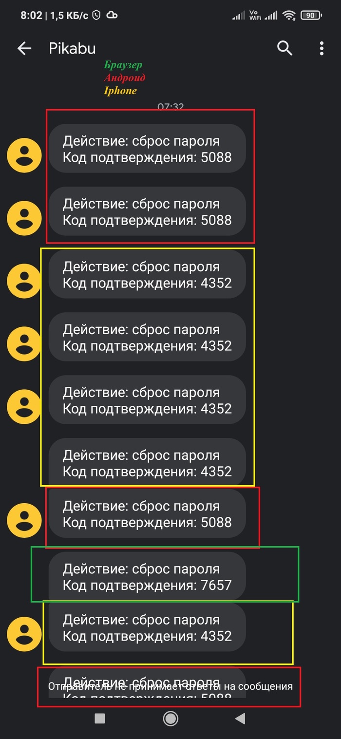 Забыв пароль решил сбросить его, пришла смс с кодом, решил попробовать еще раз сбросить, пришел точно такой же код, попробовав с другого устройства, код изменился, но повторно с этого устройства цифры повторились, с браузера такая же ерунда.