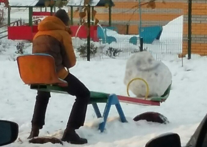 Вообще жыза. Был с компанией в Дортмунде, там есть огромные качели (не особо удачная, но какая есть фотка внизу). Минут пять уговаривал кого-то со мной покачаться, пока не увидел, что на одну из сторон забрался парень лет девяти. И сидит. Ну я подошел на другую сторону, залез и с ним покачался малеха :D