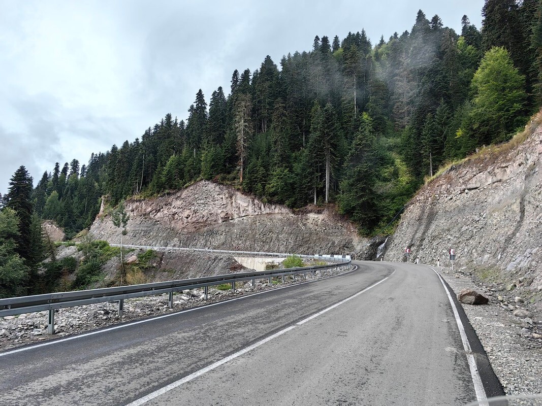 В какой то момент начался перевал Годердзи (высота 2025 м 41.3754, 42.3036), очень красивый и холодный. Природа меняется, но не сильно.