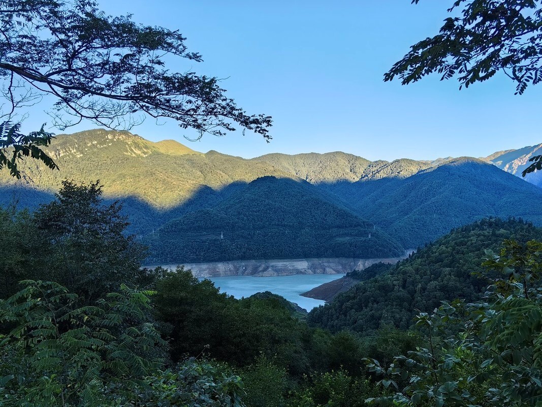 До запланированной ночёвки добраться я не успевал, поэтому остановился в кемпинге у Ингурского водохранилища (42.781796, 42.055548). Я бы сказал, что это кемпинг на минималках. Особенно запомнился душ: