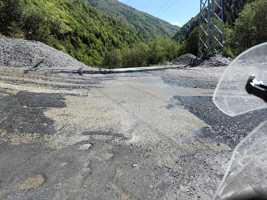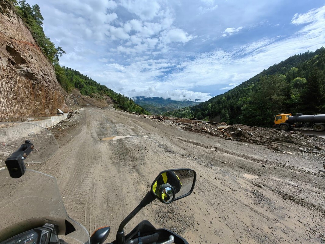 За очередным поворотом навстречу мне проехал парень на K1600GTL с московскими номерами (это был первый русский на моём пути). Дорога плавно поднималась всё выше и выше и в какой-то момент полностью стала грунтовкой. Местами попадались броды, но мелкие и проблем не доставляли.