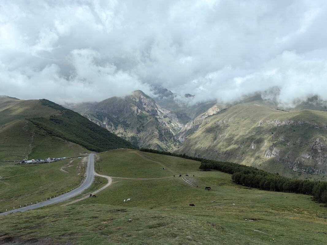 День 1. Выезд в 5 утра, погода хмурая, идёт небольшой дождь. До Пятигорска уже рассвело, но попал в приличный фронт тумана и дождя, который сопровождал меня до Владикавказа с небольшими перерывами. Местами видимость была не больше 100 метров. По советам бывалых путешественников заливаюсь во Владикавказе на Роснефти. Крайне не советую данную АЗС, так как явно не доливают, обслуживание паршивое и туалет на улице. Такое ощущение, что заправка из 90-х. Координаты для ориентира 43.022388, 44.644538