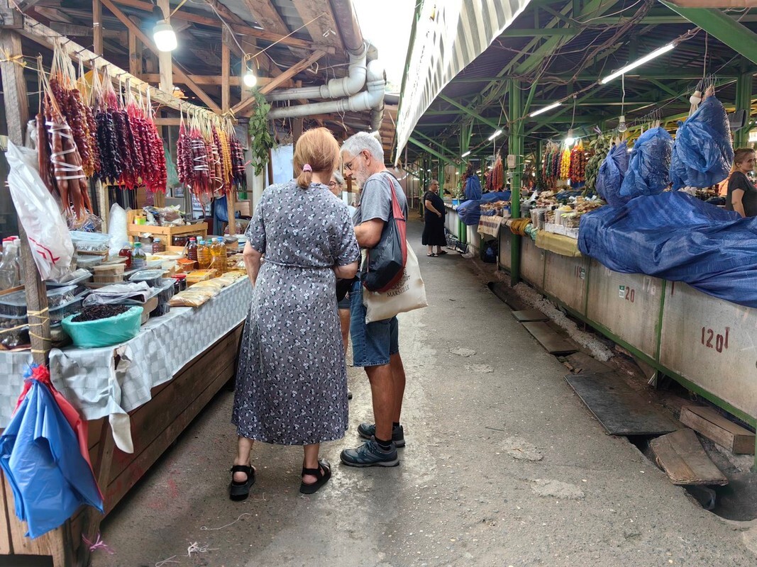 Второе — авария. Точнее не сама авария, а реакция людей. Вокруг разбитых машин собралось столько людей, что ощущение было, как будто я попал на митинг. В городе меня интересовал местный рынок, который крайне советую! (42.272314, 42.701761). Снаружи он выглядит как обычное здание с торговыми рядами, а внутри полное погружение в атмосферу. Здесь найдёте кучу овощей, фруктов, сыров, чачу, мёд, вино… в общем всё, что есть в Грузии, есть и тут, но по адекватным ценам. Меня удивило, что в субботу в 6 вечера народа тут было очень много.