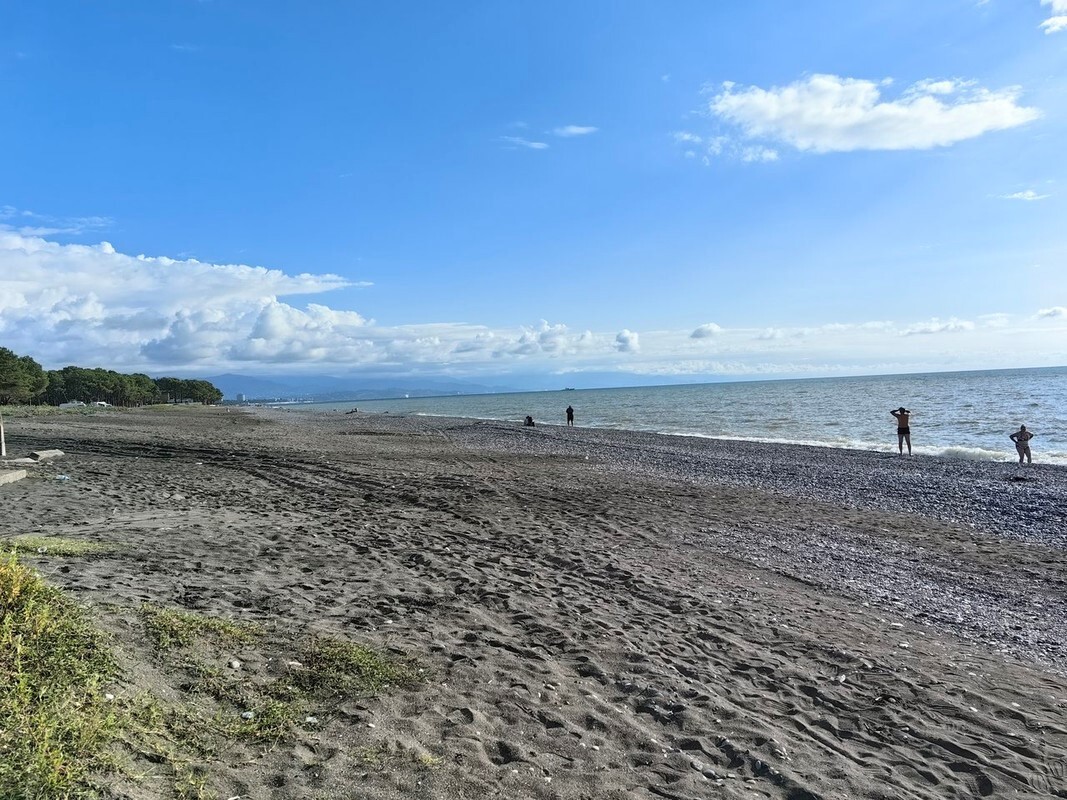 Примерно через 50 км после Батуми есть небольшой город Кобулети. Дорога до него идёт по скоростному автобану, который заканчивается крайне неожиданно. Не достроили — бывает. Что можно увидеть в Кобулети осенью: пустые пляжи, достаточно чистое море и очень тёплая вода. Купаться одно удовольствие!