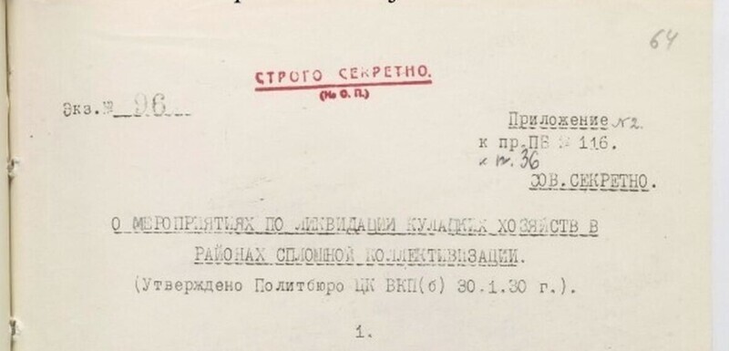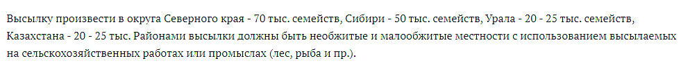 Почитайте, просто шикарный документ, прямо прописано кто, сколько должен выслать в Сибирь и расстрелять, если не найдут столько как поступать известно, специально введена категория(для высылки) - "остальные кулаки", а остального кулака всегда найти можно.