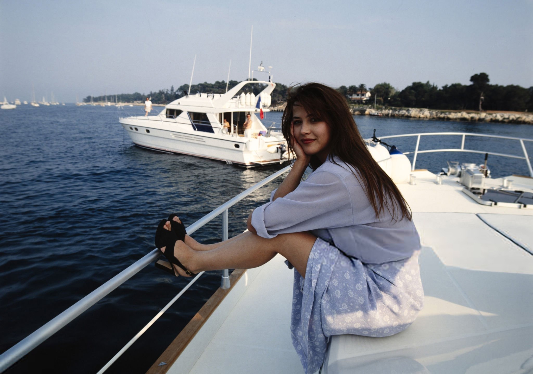 Софи Марсо на яхте в Каннах во время фестиваля. 1992 год.