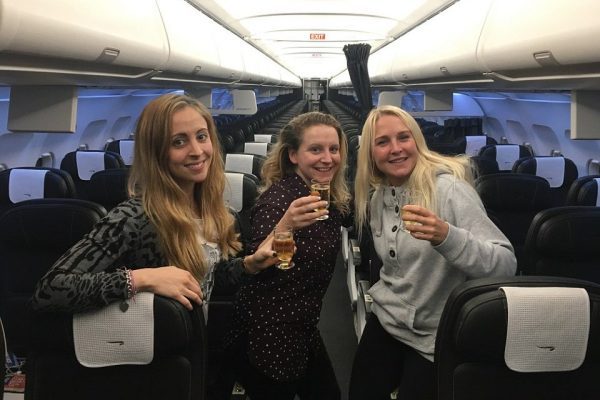 Три подруги оказались единственными пассажирками рейса из Гибралтара в Лондон и устроили на борту весёлую вечеринку. Девушки с билетами в эконом летели в бизнес-классе, запивали лучшие деликатесы бесплатным шампанским и фотографировались в Executive Lounge. Лора Стивенс и её подруги Сара Хант и Лори-Лин Воллер три дня отдыхали в Гибралтаре, а за три часа до вылета обратно в Лондон 18 декабря узнали, что их рейс задерживается на три часа. Девушки решили ещё немного погулять, а когда приехали в аэропорт, то узнали, что другие пассажиры поменяли билеты на рейс, улетевший раньше