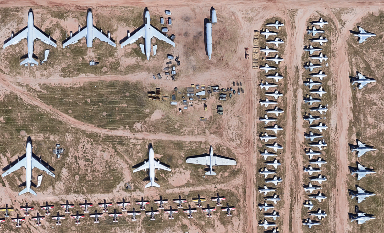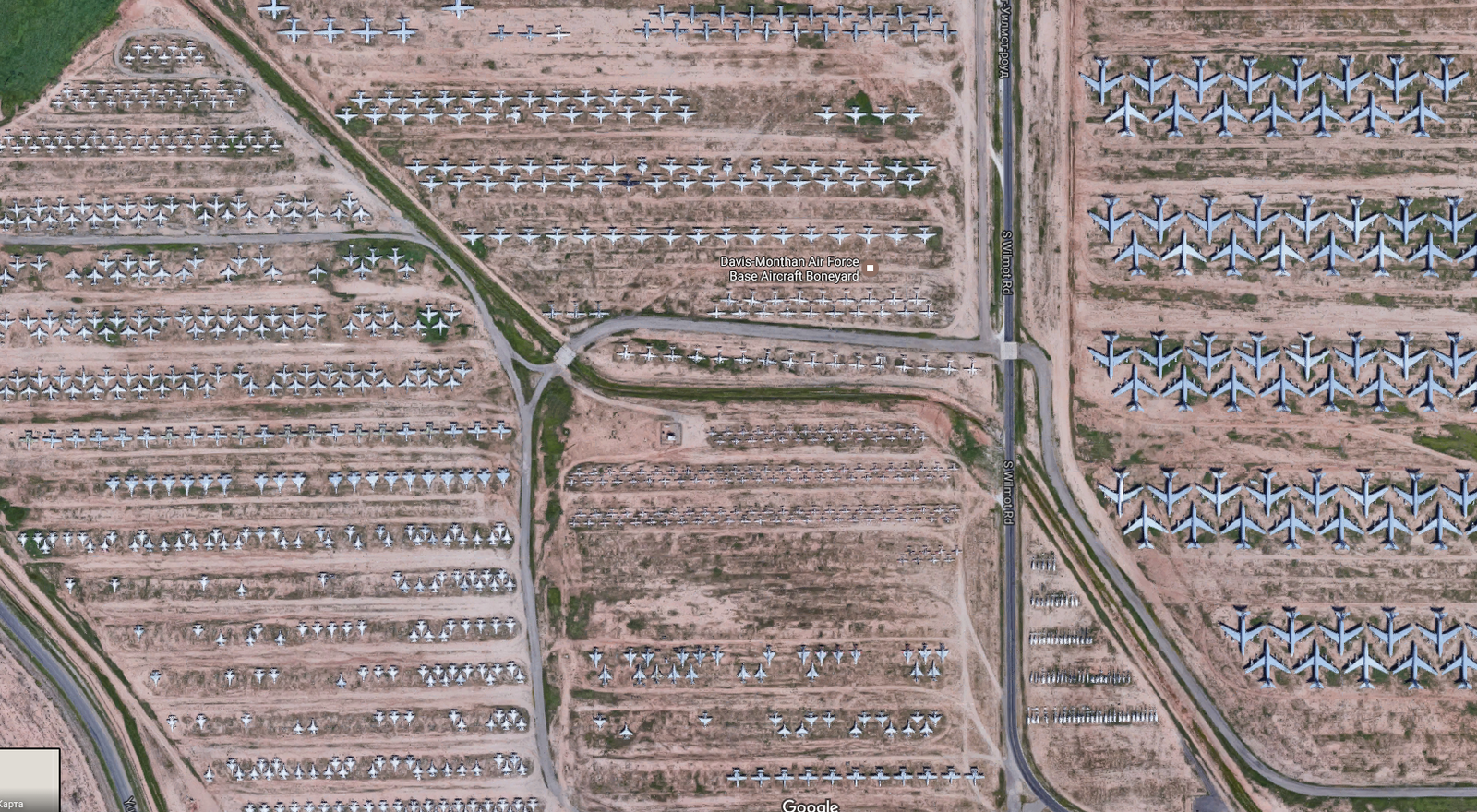 Авиабаза «Девис-Монтен» находится рядом с американским городом Тусон и является, возможно, крупнейшим в мире местом консервации авиатехники — на приколе здесь стоят около 4 400 самолетов и 40 космических кораблей. Каждый год сюда поступает около 400 единиц техники и столько же продается или уничтожается.