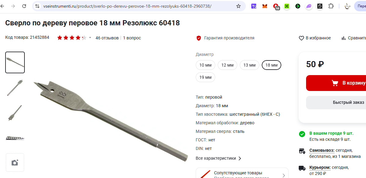 Одно перо по дереву 47руб + дорога до магазина 150 руб. Заказ в доставку в соседний подъезд - 265 руб за набор из 6 перьев 10, 12, 16, 18, 20, 25мм