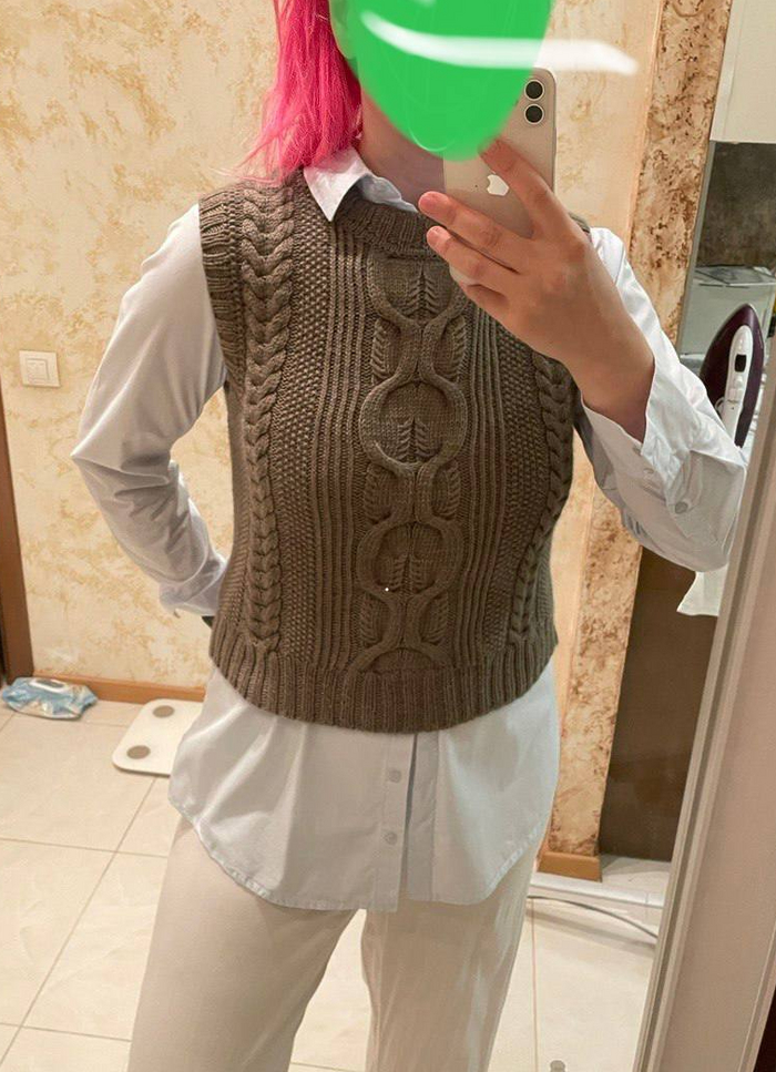 жилет, Кашемир 35%, шелк 35%, меринос 30%. Косы не светлее, чем основа, это они так блестят. Он такой, знаете, жирненький как трехлетний пупсик